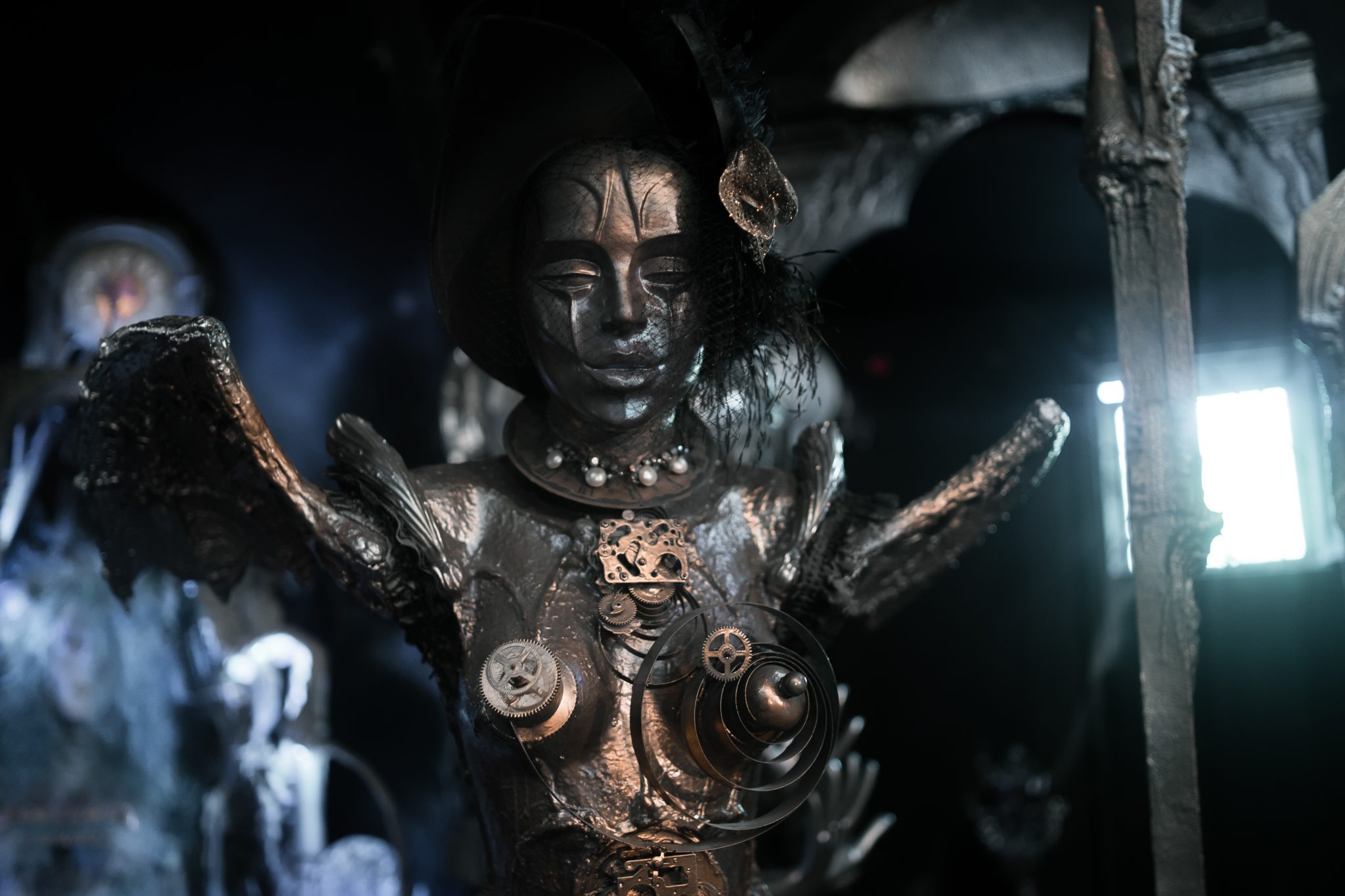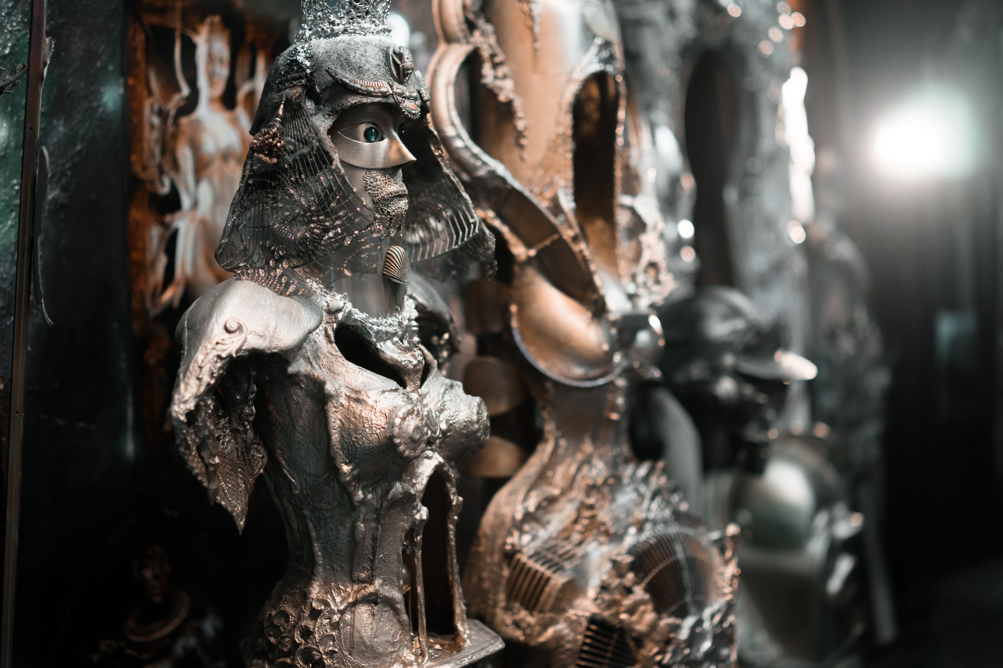 Художник встретил нас в своей мастерской, которая буквально пропитана таинственностью. Приглушенный свет и силуэты прекрасных дам создают атмосферу сказочного мира, а сам скульптор превращается в героя волшебной истории.