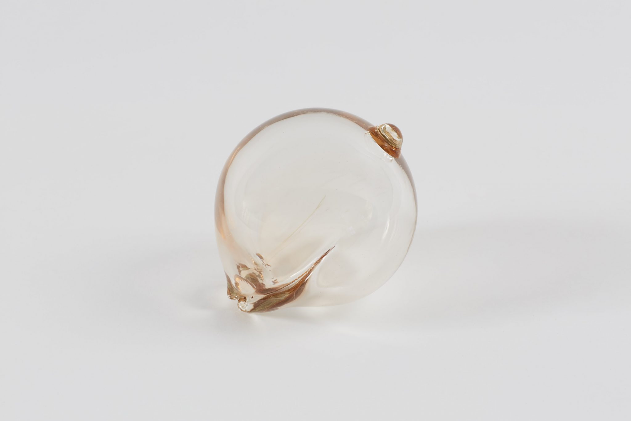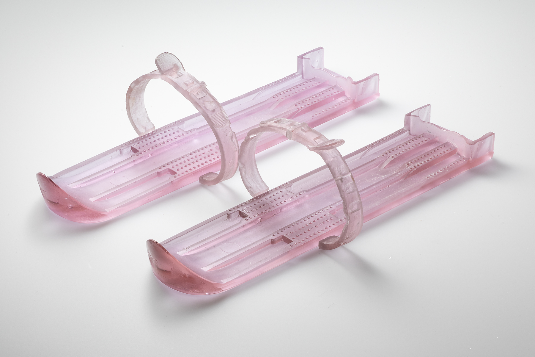 Эта работа называется Saturdays, выполнена из литого стекла. В детстве я надевала такие же мини-лыжи для того, чтобы ходить в школу искусств по субботам, отсюда и название — Saturdays, то есть «Субботы». Сами лыжи, форму которых я использовала в этой работе, я привезла из Екатеринбурга. Для меня это работа про сладость и хрупкость воспоминаний о детстве, про ностальгию.