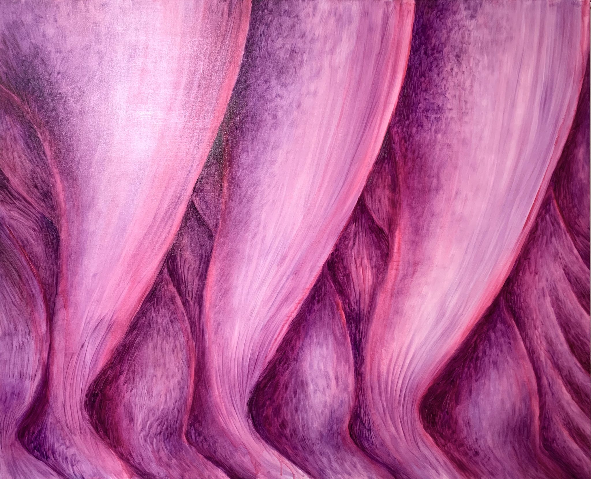 Я сперва закончила факультет индустриального дизайна в Екатеринбурге, в УралГАХУ, и магистратуру в Англии в Лауборо (Loughborough), это небольшой университетский город в Лестершир. Вернувшись ненадолго в Россию, я после все же уехала в Милан, где стала работать индустриальным дизайнером в частной студии, но не бросала заниматься искусством. Тогда же я впервые попала на ярмарку Art Basel в 2014 году, где познакомилась со многими интересными творческими людьми и встретила художников, которые занимаются только искусством. После этого я решила тоже попробовать и отправила заявку в Royal College of Art в Лондоне – это известная историческая институция, где учились Генри Мур (Henry Moore), Трейси Эмин (Tracey Emin) и другие. Это единственная такого рода школа, где только postgraduate education, то есть магистратура и Ph.D. (аспирантура). Конкурс был большой, но мне повезло, и меня приняли на двухлетнюю программу по живописи (painting program). Я подумала: «ладно, рискну» и поехала. Конечно, это был такой взрывающий и раскрывающий опыт, потому что система обучения искусству в Англии была отлична от того, что я получила до этого. Там в основном нас учили мыслить, рассуждать и критически подходить к собственным работам — преподавали философию и теорию современного искусства.