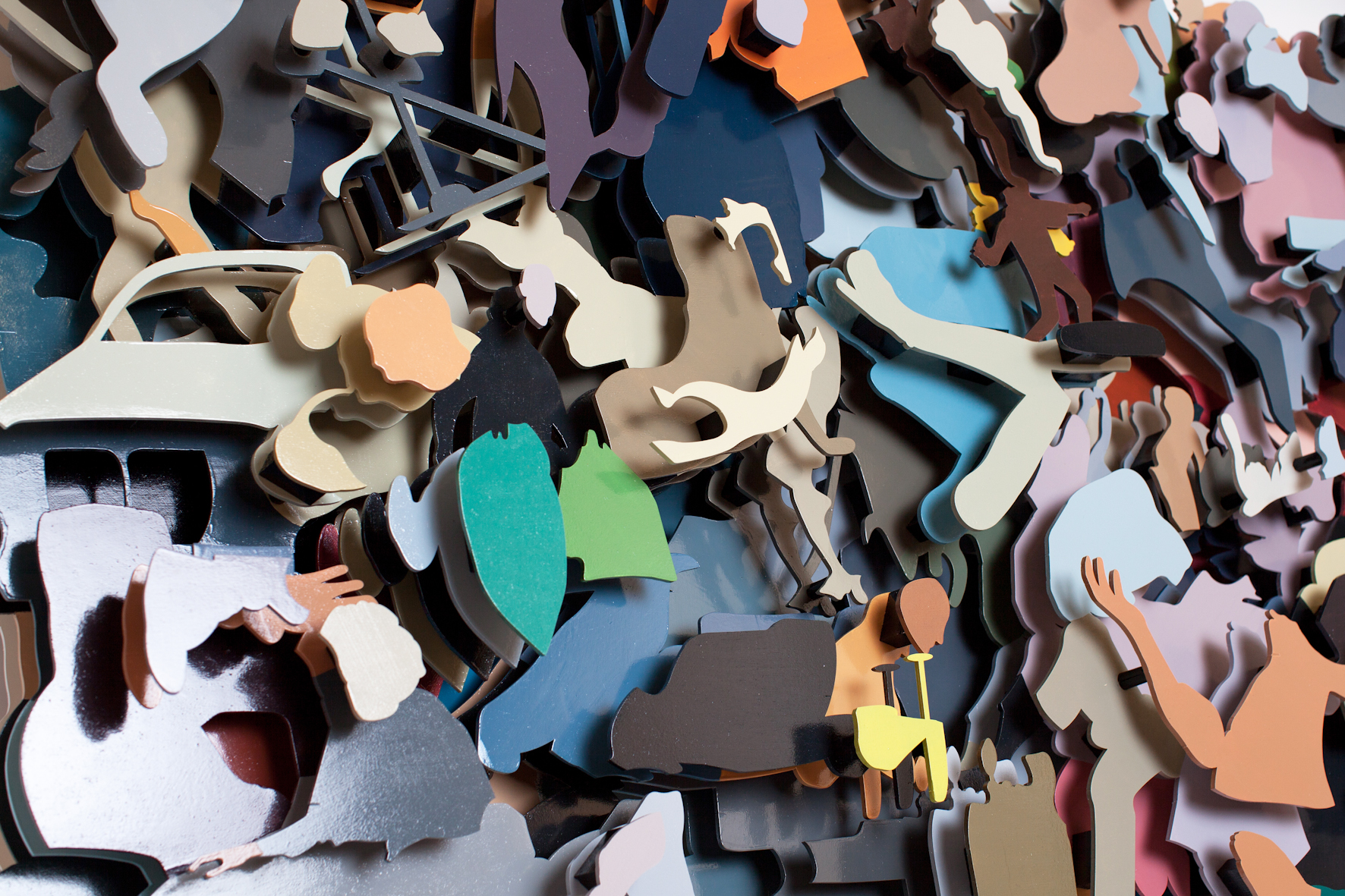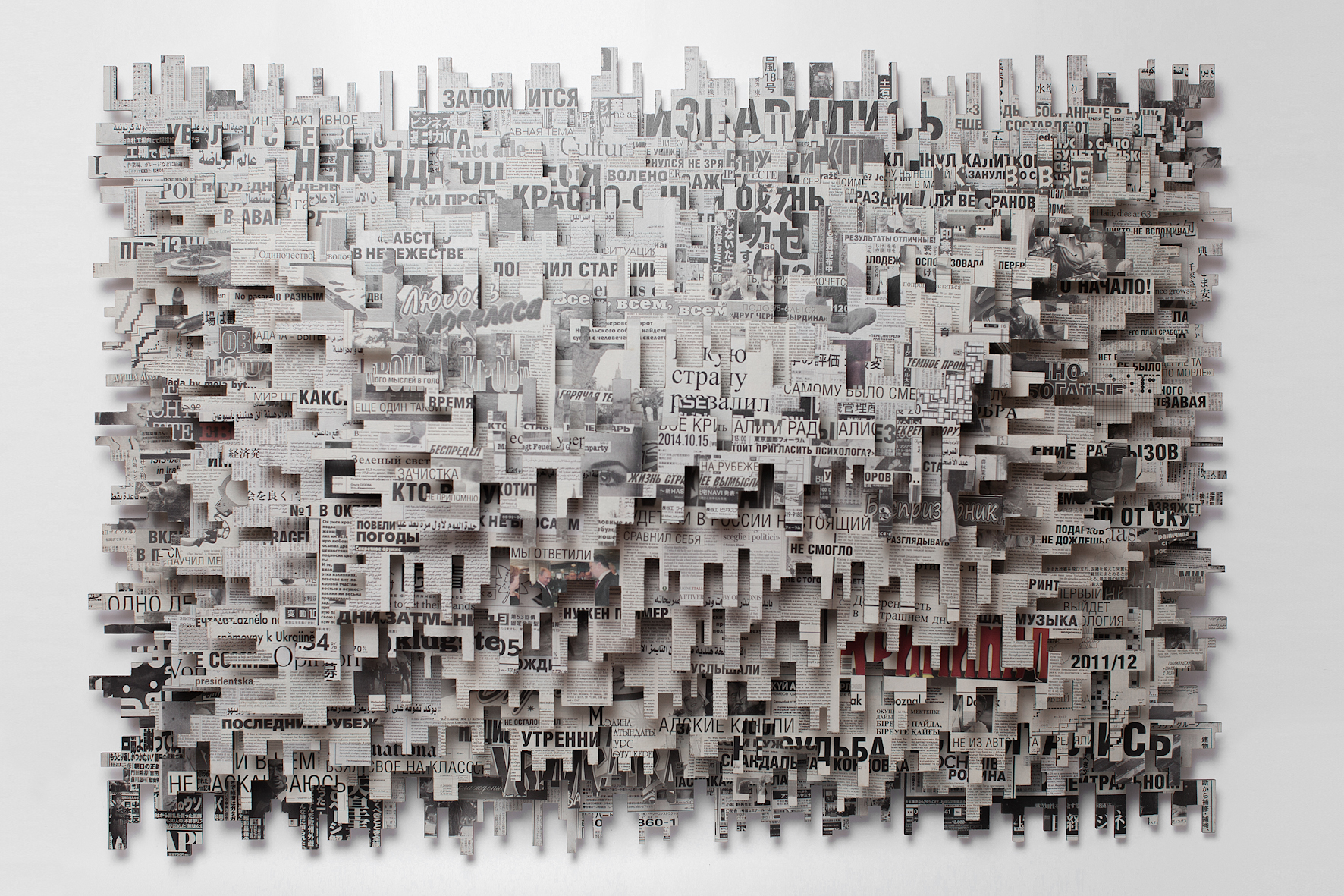 Такого же мнения придерживается и Павел Киселев, московский художник, создатель серий многослойных деревянных скульптур, в которых пространственная композиция идеально сбалансирована с абстрактным выражением. В серии работ для выставки «Новое сообщение», недавно прошедшей в Музее Современного Искусства в Москве, художник рассмотрел вопрос информационного обилия с новой стороны.