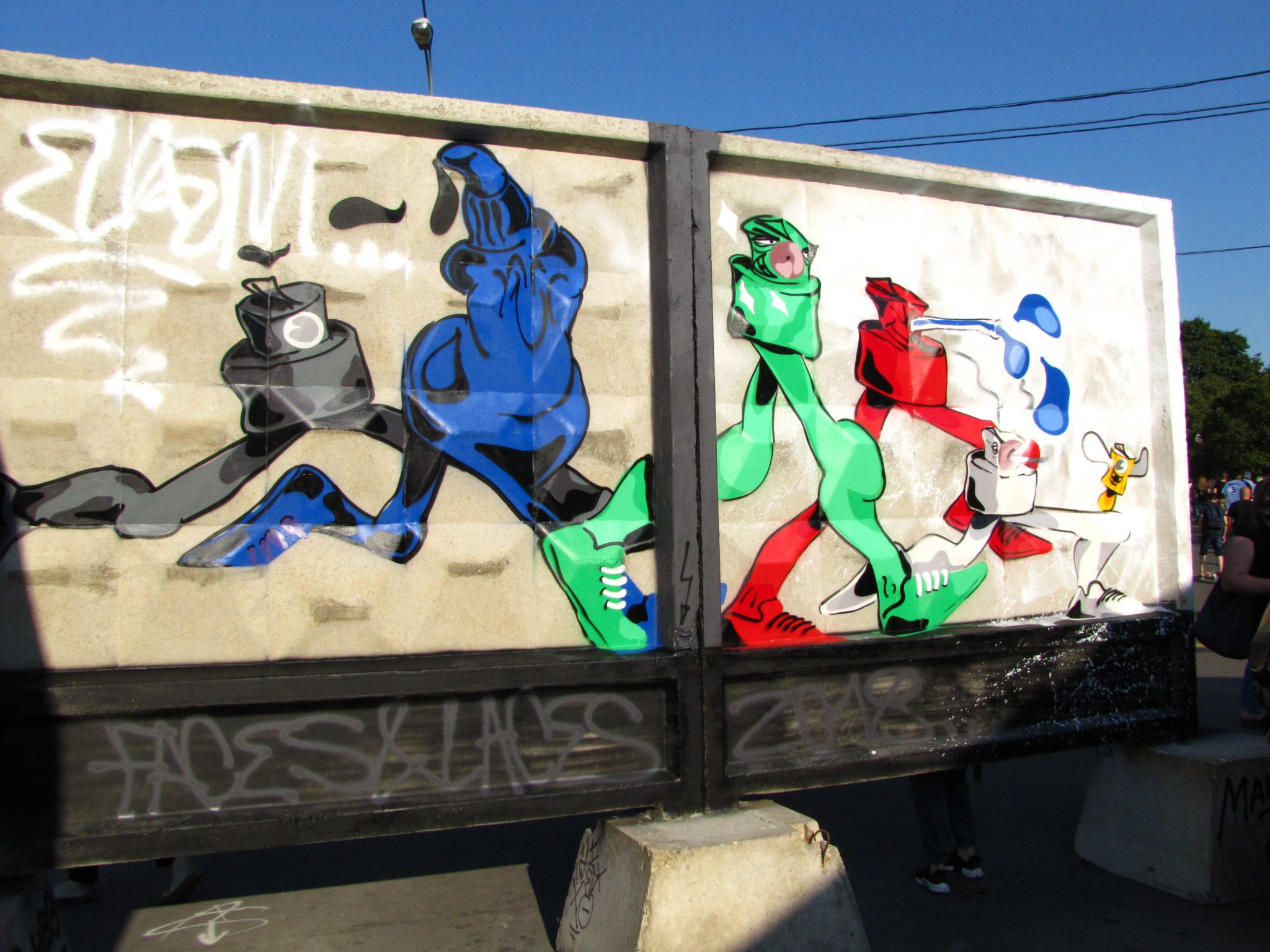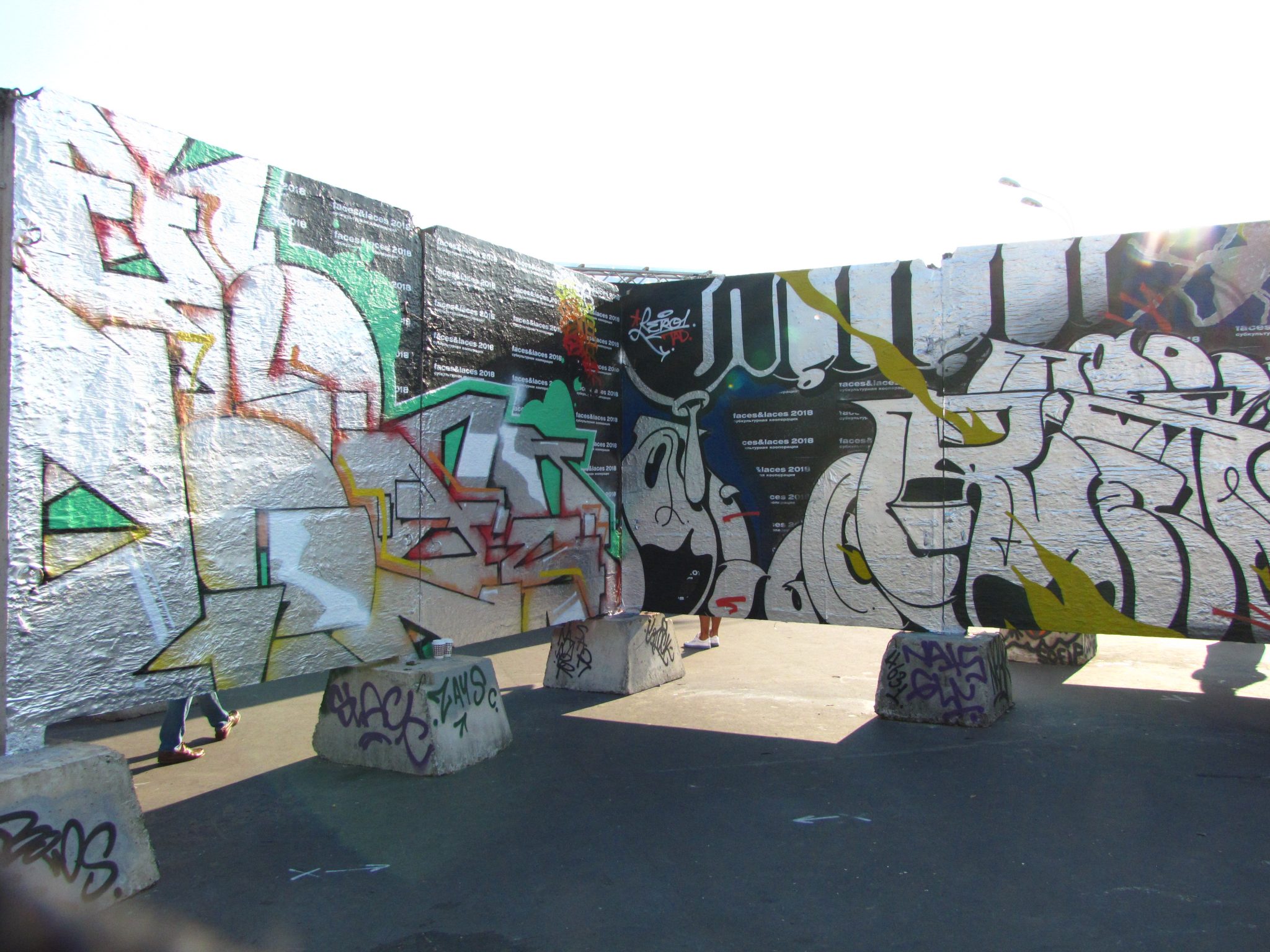 И, конечно, какой фестиваль современной культуры без граффити оформления? В самом начале набережной разместились реальные фрагменты бетонного ограждения. В этом году над росписью работали московские и питерские райтеры, и специальные гости: RETRO, ASHESTEEN, SUGAR18, SNEKSY, SPACER, JUICE, ELOOM, RUBAE, BIOS, AUGUST, STOCK, ISSUE, RAMBO.