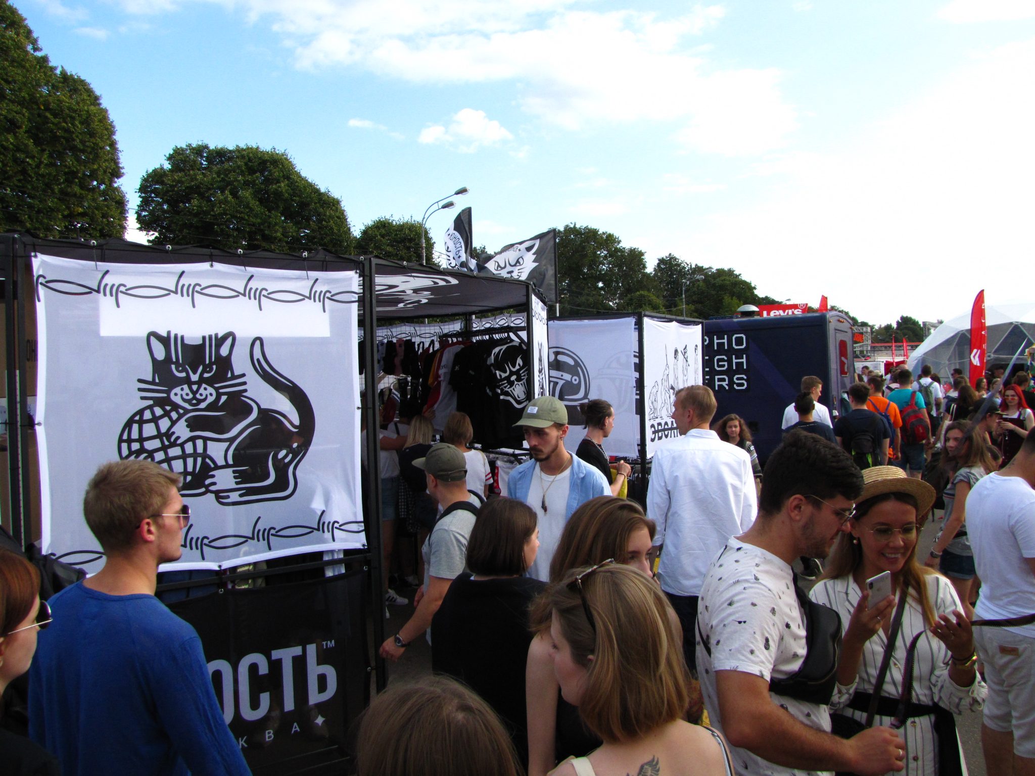На набережной реки Москвы расположились фудкорты и торговые зоны, где можно было приобрести одежду от таких брендов как «Юность», Colin`s и Ziq&Yoni.