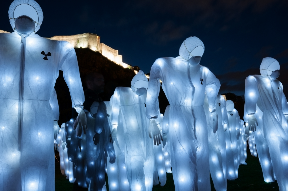 А на фестивале в Гамбурге ребята из Luzinterruptus подняли ядерную тему, выступив с инсталляцией «Радиационный контроль» (Radioactive Control). Luzinterruptus сделали попытку развеять мифы о радиации, ведь многие после аварии на японской атомной электростанции начали паниковать. Но с другой стороны, художники хотели обратить внимание на реальную угрозу радиации для всего человечества. Стоит предположить, что эти цели были с успехом достигнуты.