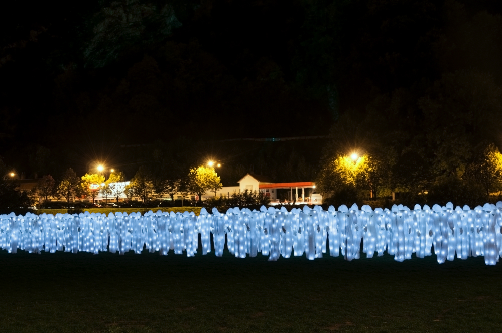 Анонимная группа художников создает невероятные по красоте и смыслу световые инсталляции. Одна из самых нашумевших работ коллектива – «Музейная охрана» (Plastic garbage guarding the museum) — была представлена в швейцарском городе Винтертуре на выставке О, Plastiksack! Вот таким образом свет в руках вдохновленных мастеров стал материалом для творчества. Выставка была призвана помочь увидеть нерациональное использование пластика и его воздействие на окружающую среду.