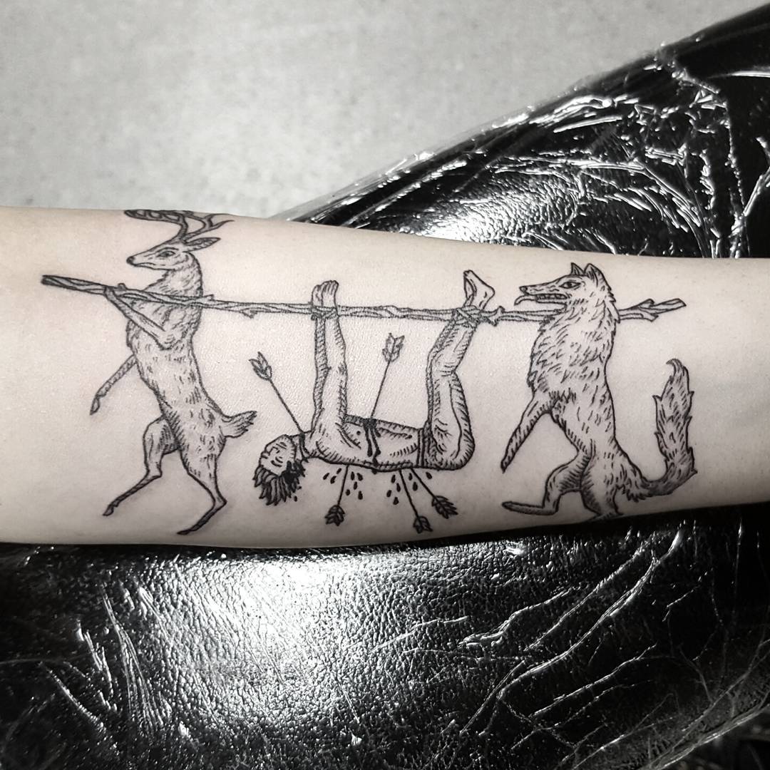 Таким образом, веганские татуировки условно можно разделить на идеологические, выполняющие роль некоего баннера, и обыкновенные, которые просто соблюдают принципы этичности в процессе нанесения. И, полагаю, среди них не должно быть изображений оружия, войны и других проявлений насилия. Только мир, только хардкор?