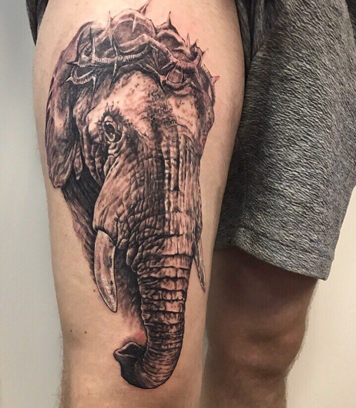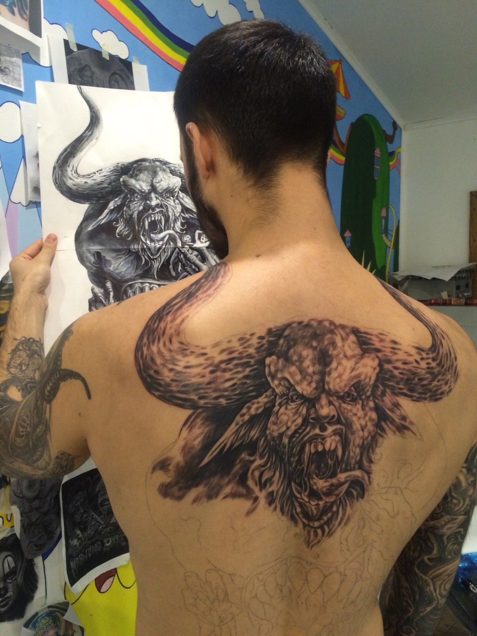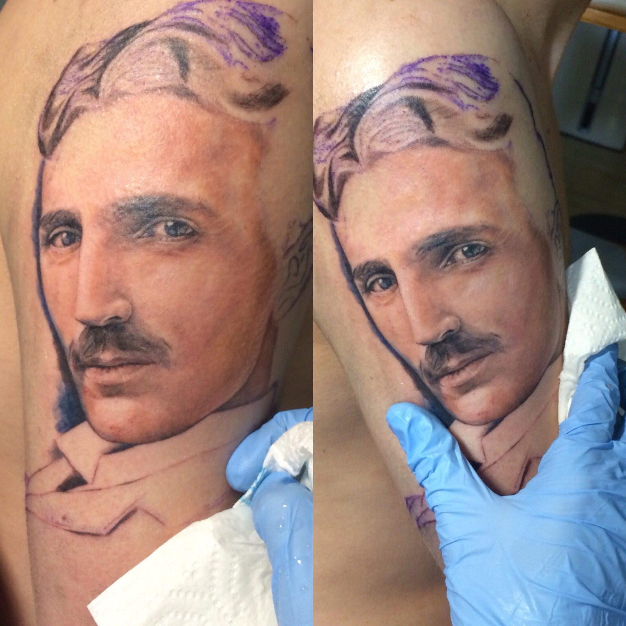 В России я работаю исключительно по собственным эскизам или фотографиям. Для меня татуировка как искусство в большей степени проявляется именно в разработке эскиза, а не в копировании изображения на кожу. Последнее скорее можно расценивать, как мастерство. Также мне нравится работать без эскиза, рисовать непосредственно на самом теле перед сеансом. В дальнейшем я планирую больше подобной практики.