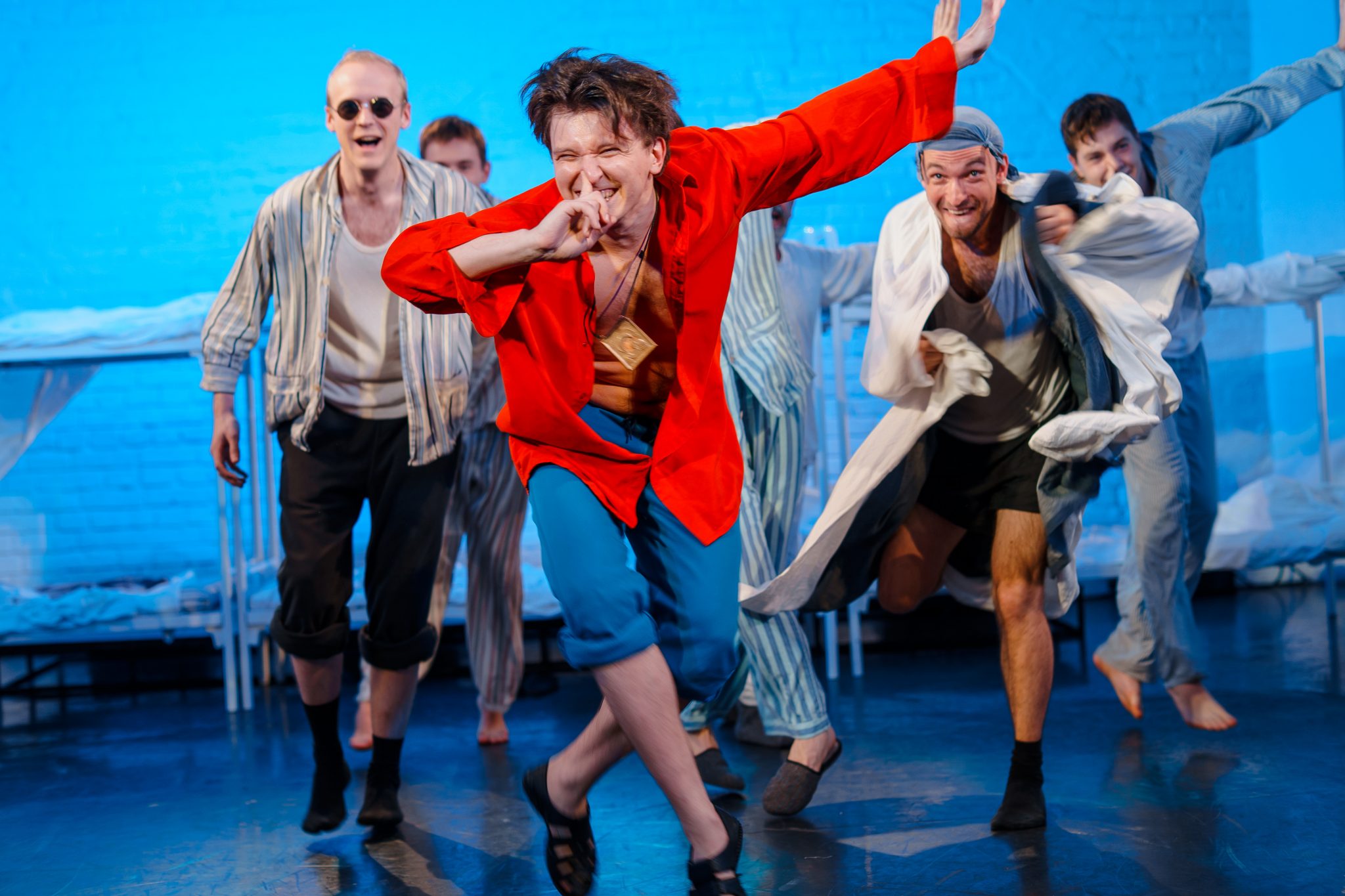 Хочется отметить художественное решение. При минимальной сценографии — табуретка и пять двухэтажных кроватей, важной его частью стало обилие белого цвета в композиции. Белые стены театра, белое постельное белье, белые кровати. В определенные моменты описанное внезапно окрашивалось светом в другие цвета и меняло свою стерильность на нужное настроение.