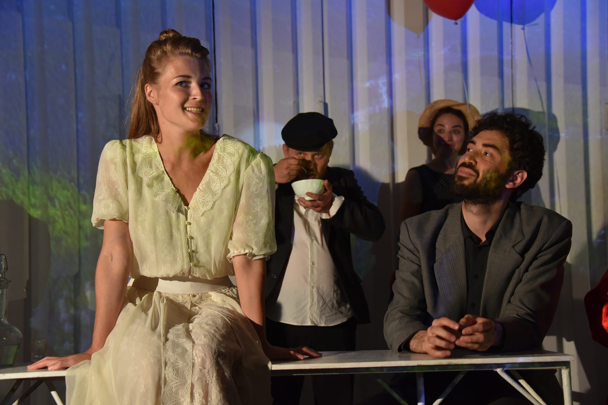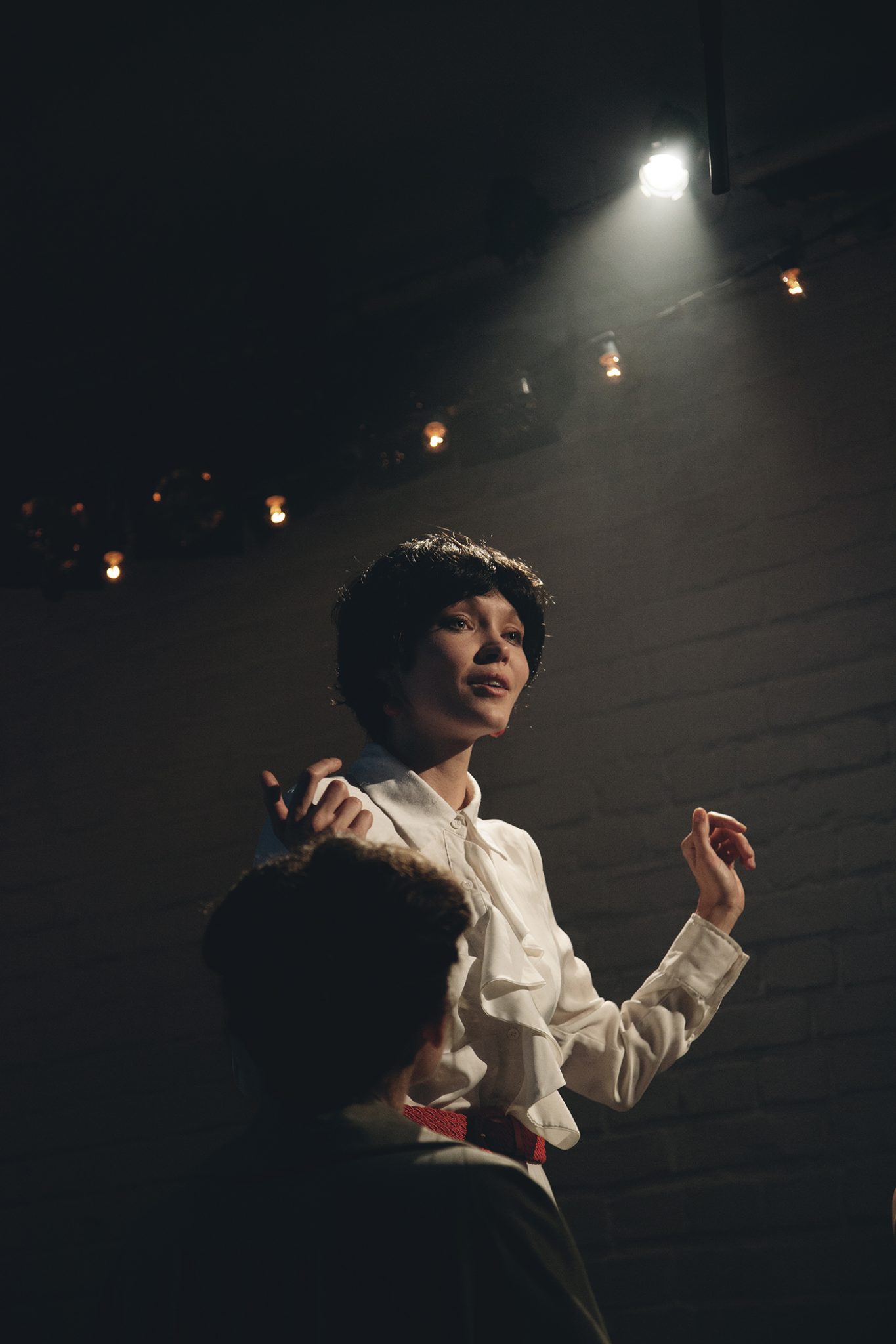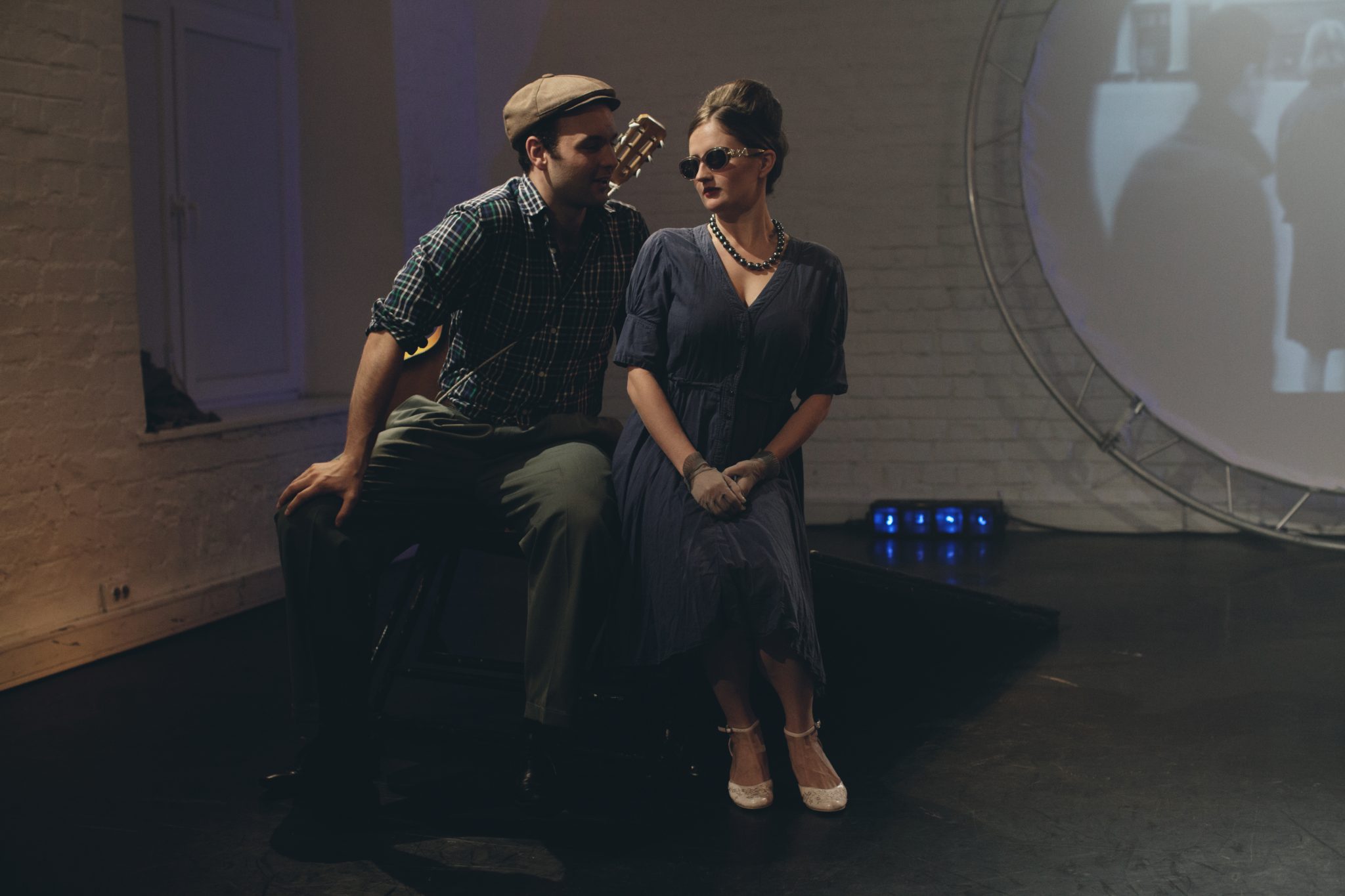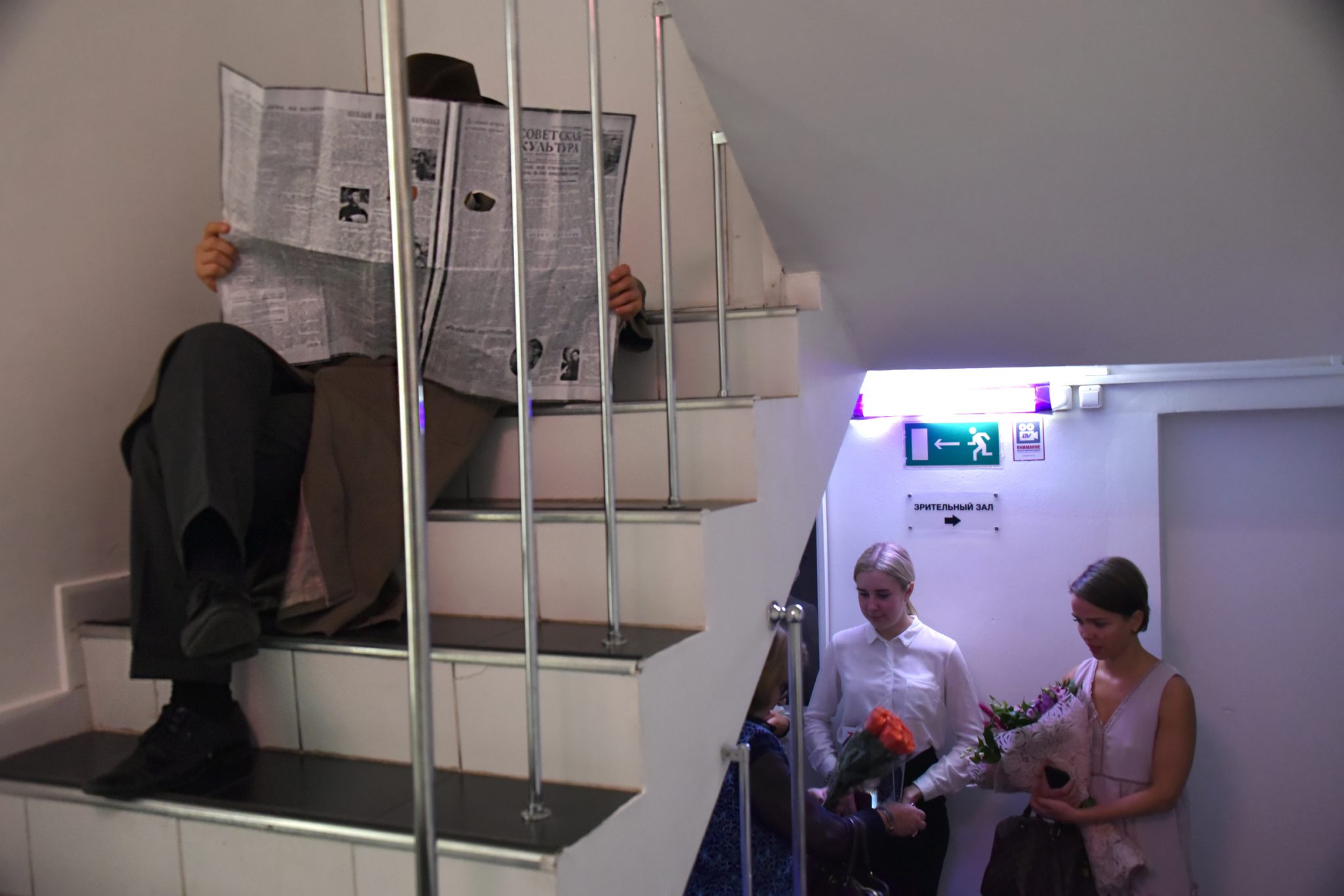 Иммерсивная часть спектакля сделана очень мило. Четыре Любы все время до третьего звонка будут бегать среди зрителей, искать киномеханика и пытаться стрельнуть лишний билетик. А персонал пытается выставить их из зала, даже жалко девушек. Поэтому, когда Люба (Елена Плужникова) попросила лишний билетик у меня, я с радостью предложил ей свой, час постоять – не поле перейти. Моя любезность, однако, принята не была. Скорее всего, потому что рядом стояла еще одна Люба (Анастасия Сысоева), но, в любом случае, ситуацию решить было можно. С пресс-секретарем театра МОСТ мы дружим, места для двух любознательных девушек точно бы нашлись, да и стояла она не в Люберцах, всего этажом ниже. Я было убедил их оставить нелегальности и решить ситуацию полюбовно, как подбежала третья Люба (Ксения Берелет) и забрала моих Люб с собой. И любо вам сидеть на чужих местах! В общем, любообилие вокруг меня все-таки привело меня на место, указанное в билете. Хотя я не любитель раскалывать актеров в образе, проработку захотелось проверить.