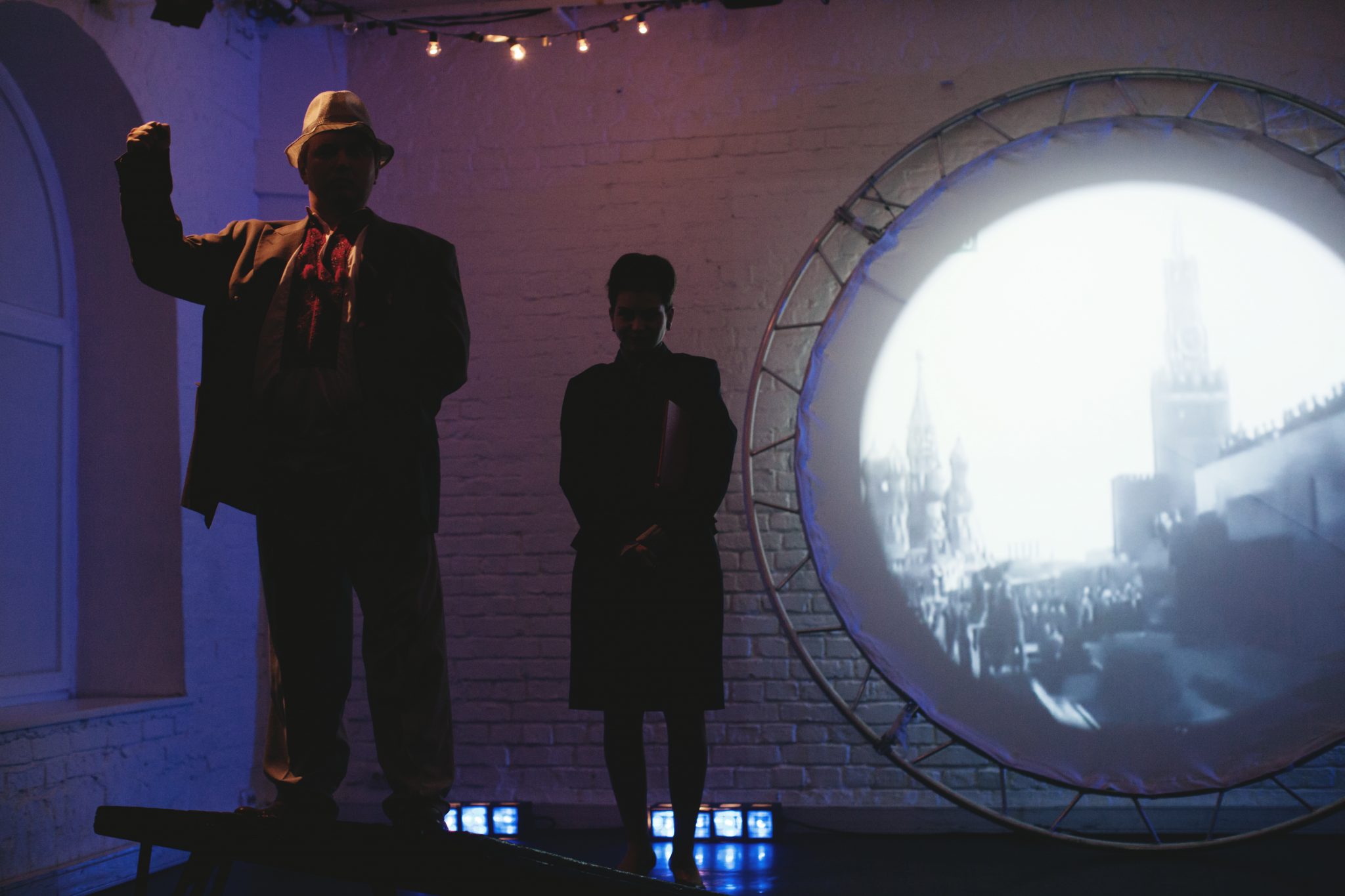 А на ней все заканчивается. Каждая личность стала жертвой маленького хронометража, жертвой «упоминания». Например, Рудольф Нуреев. Только его исполнитель Андрей Рогозин набирает нужный градус, и захватывает зал, как танцор уже эмигрировал и рассказ кончился. Танцор явно требует больше пяти минут для своей истории. Этим страдает вся повествовательная часть, сделанная в эстетике литературного театра, она смотрится не драматургией, а подборкой фактов. Был Гагарин, был Хрущев, был Визбор и что это значит? Что в шестидесятые было хорошо?