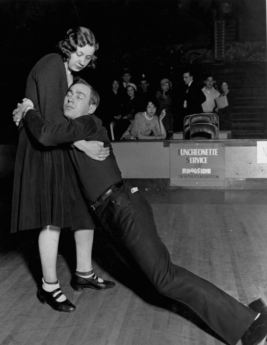 А при таких условиях марафоны длились неделями или даже месяцами! Они охватили всю Америку. В Чикаго, например, действие шло в течении 5 152 часов или 214 дней! 214 дней безостановочного танца! А это не рекорд. Почти сразу появились люди, превратившие действие в шоу, залы были битком забиты публикой, готовой платить за зрелище, как пара десятков человек без остановки танцуют за несколько тысяч долларов. Главным правилом было не касаться коленями пола. И, хотя некоторые люди принимали участие просто ради бесплатной еды, большинство действительно хотело выиграть, поэтому самые отчаянные танцоры ближе к финалу держали своих обессиленных партнеров на руках.