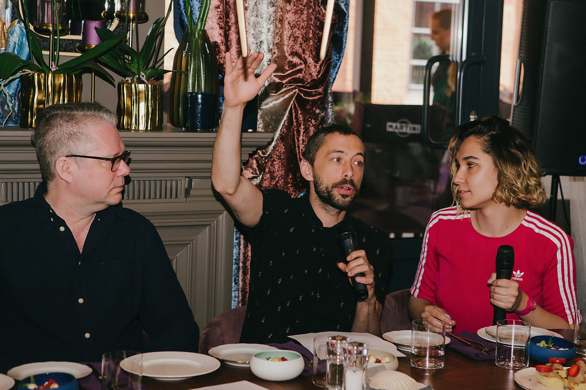 Пресс-завтрак стал для меня форматом неожиданным. Я посещал пресс-конференции, пресс-показы, но соединить дефисом слово «пресс» со словом «завтрак» мыслей не было. И вот недавно меня пригласили на это мероприятие, посвященное грядущей премьере спектакля «Танцпол» в театре «Балет Москва». Предвкушая оладушки с сырниками, я открывал дверь ресторана Tinto, примерно в десять пятьдесят. Первое, что спросил у меня администратор, какое мне подать вино. Теперь всем друзьям рассказываю, что на моей работе я начинаю день с брюта. Организаторы дали прессе натрапезничаться вволю, кто-то даже успел распределить яства по своим контейнерам, прежде чем завтрак перешёл в конференцию.