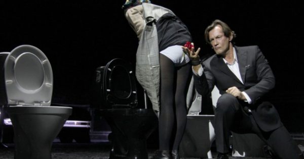 А какашкой оказались сами. Прямо на сцене в конце всего этого действия всю жизнь человеческую сливает Смердяков-повар в унитаз, похожий на надгробие. И это Достоевский как-то сказал, что у жизни нет никакого смысла, если этот смысл не отыскать. А так одна сплошная Жизнь без раздумий и в результате — слив бачка в унитазе. И расходится зритель под стихи Ваншенкина «Я люблю тебя, Жизнь». Только читает эти знакомые с детства строки сам дьявол в прекрасном, завораживающем исполнении Игоря Миркурбанова.