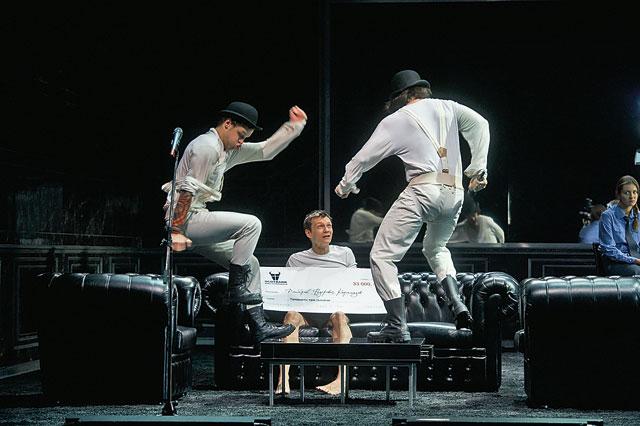 И эту полифонию и пытается передать со сцены Константин Богомолов. Режиссёр хочет заразить своего зрителя этой изменчивостью, хочет сбить его с определённого фокуса. Зрителю кажется, что он пришёл посмотреть на лицедеев, он пришёл на их фоне сделать селфи. Ведь это модный спектакль и билеты дорогие. Как сказал один мой знакомый, посмотрев спектакль по «Гаргантюа и Пантагрюэль» Рабле: «Актёр хорошо какашку сыграл». Вот и пришли посмотреть, как шуты перед ними какашку играть будут.