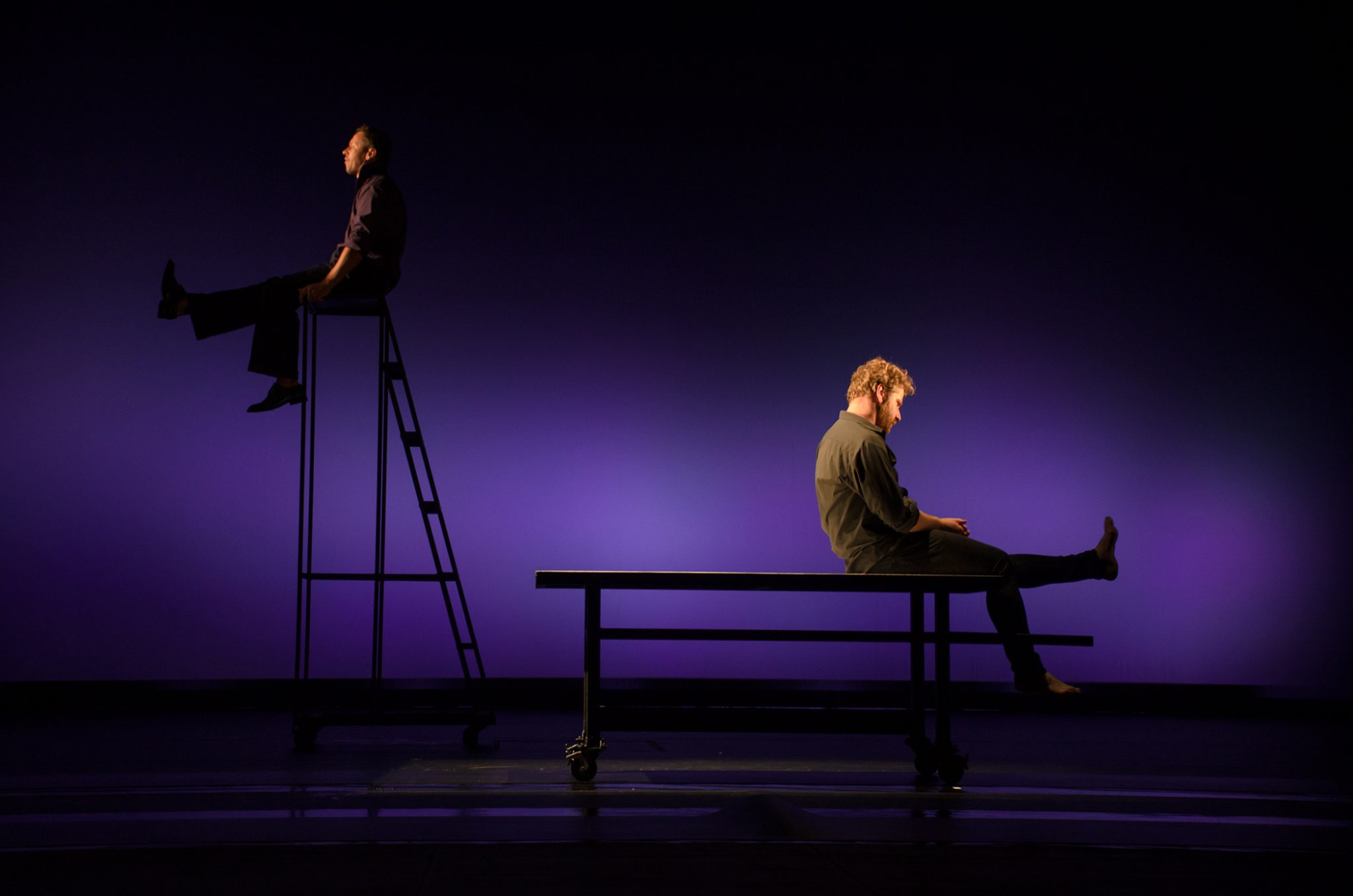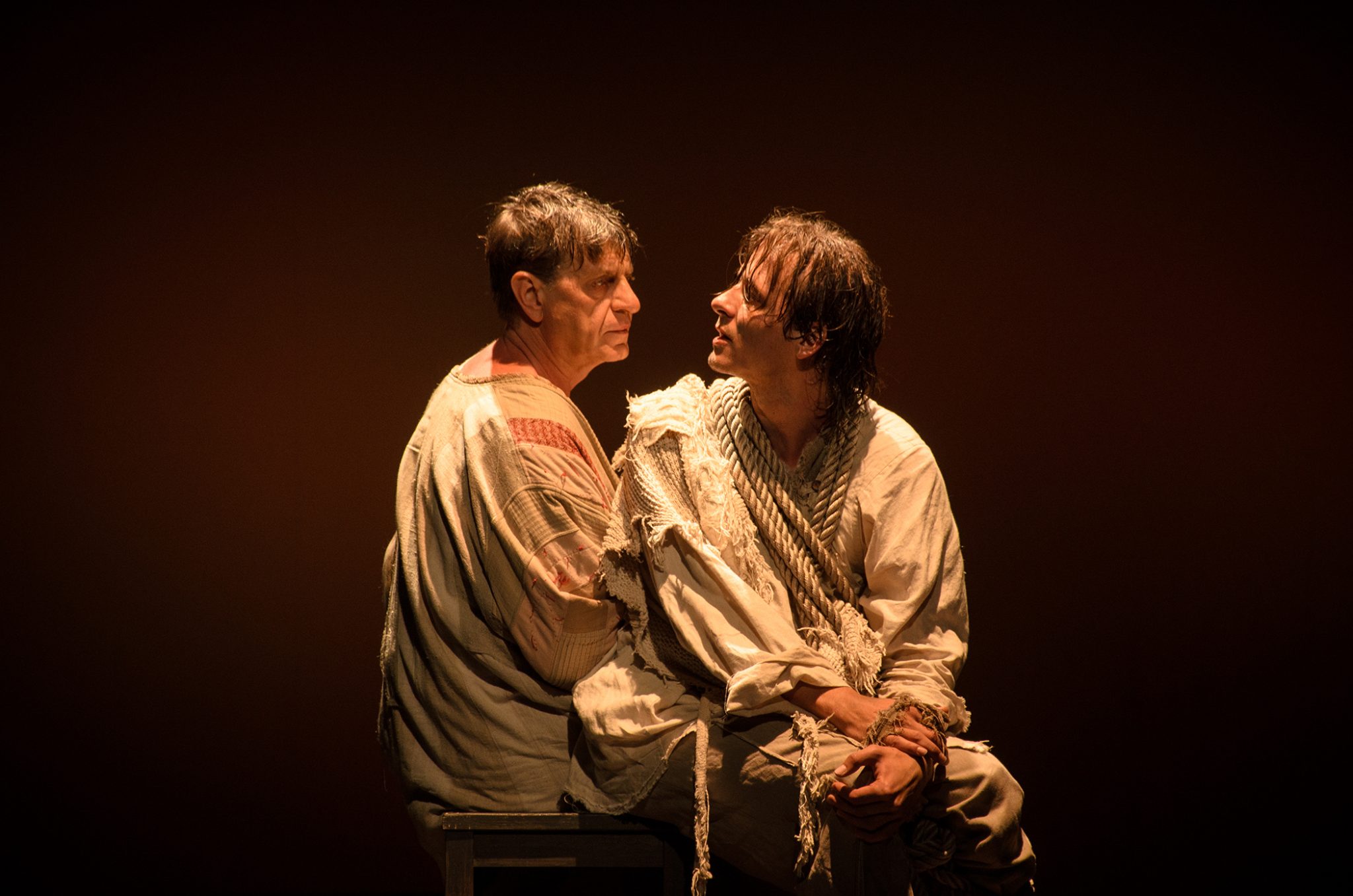 Второе действие связано с первым только общими персонажами. В нём прерывается стройность композиции. Сатира, поднимаемая ранее никак не всплывает, про неё забывают и без всякого перехода начинают поднимать более глубокие мысли романа, окрашенные трактовкой. Здесь четко проводится параллель между Мастером и Маргаритой, Пилатом и Иешуа. В финале спектакля они одновременно ведут диалог каждый в своей паре, по разным сторонам сцены. И пока Воланд на заднем плане говорит с Левием Матвеем о вечном покое, напрашивается странная мысль — а будут ли Мастер и Маргарита счастливы? Ведь Пилата, судя по первому акту, грызет чувство вины из-за того, как он поступил с Иешуа. Для прокуратора эти отношения — гнетущее бремя, хомутом висящее на его шее. Как-то не вяжется это с темой двух любовников.