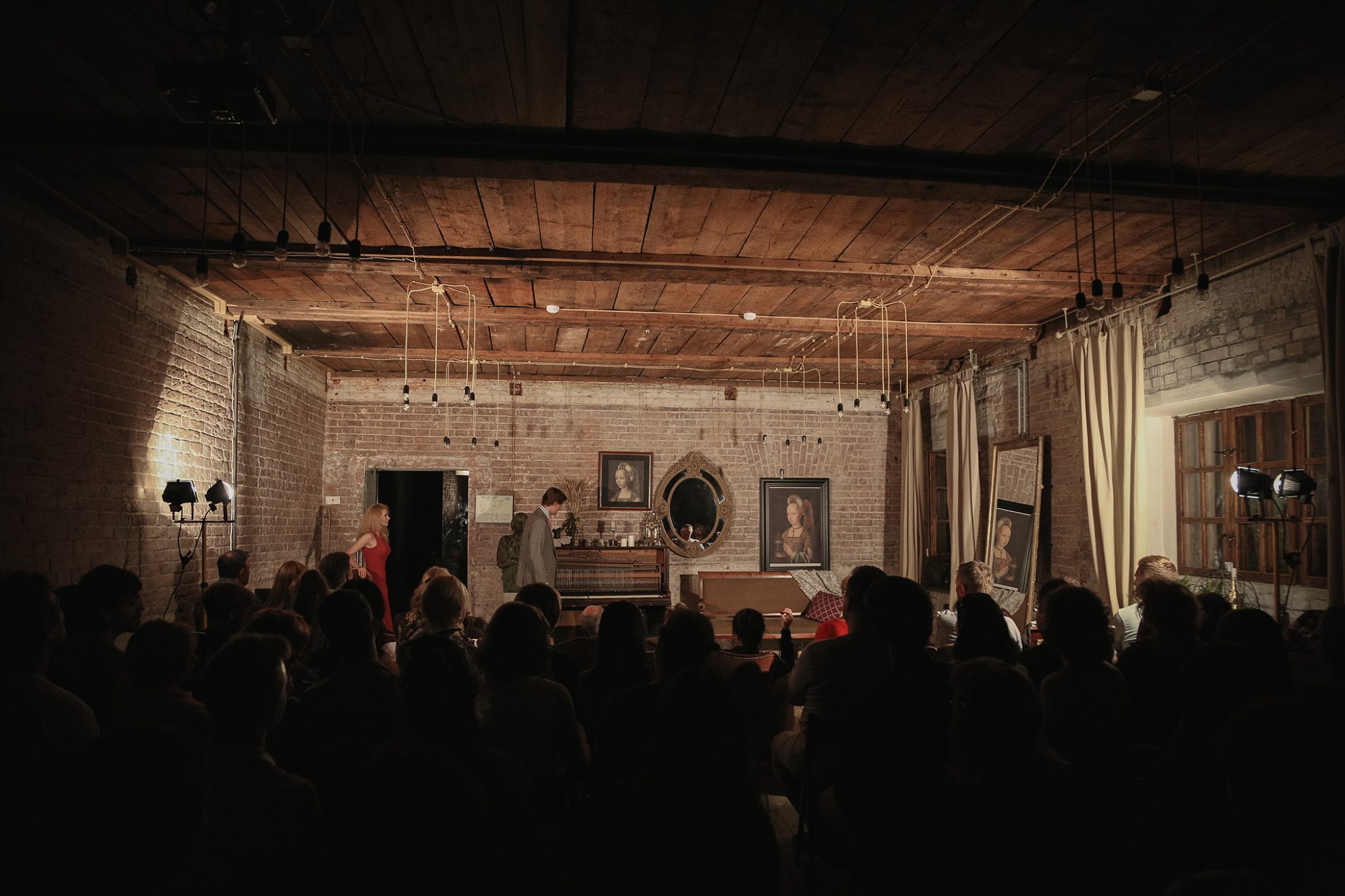 Описать их творчество мне бы хотелось на примере недавно увиденного мною спектакля «Любовь с летальным исходом». Место проведения — усадьба Roden. И знаете, эффект от ее атмосферы определенно подогрел мой зрительский интерес. Для того, чтобы выйти к ней, пришлось пройти через перекопанную площадь с горками плитки. Сквозь столпы пыли, обходя технику и пролезая под проводами. Но дальше... Ухоженная деревянная дорожка, проходящая по газону. Здесь не было слышно рабочих. На фасаде здания горели свечи. Ни пылинки кругом. В контексте последних минут это место показалось мне таким иррациональным, даже нереальным. Создалось ощущение, что я вышел из Москвы, когда оказался внутри и удобно устроился в пышном кресле