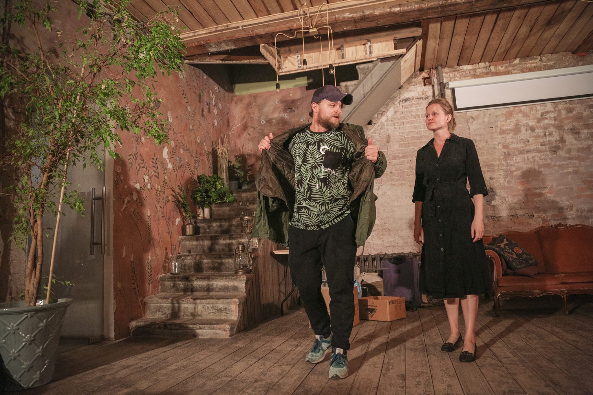 Гостевая зала была поделена на две половины — актерскую и зрительскую, после антракта они менялись местами. Вместо бутафорских декораций — натуральный интерьер. Режиссеру удалось достичь эффекта, к которому стремился ещё Константин Сергеевич Станиславский — публика как бы подсматривала за жизнью на импровизированной сцене через замочную скважину. А «жизней» здесь две.