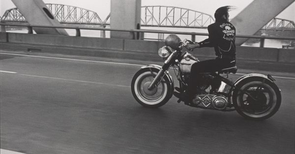 Так же дело обстоит и с его фотографиями чикагской банды мотоциклистов Chicago Motorcycle Club, снятых в середине 60-х. «Путешествуя вместе членами банды по всей Америке, — гласит музейная табличка, — Лион хотел показать их образ жизни изнутри». Но на снимках байкеров и их подружек, одетых в поношенные джинсы, на удивление не хватает жестокости и насилия, характерных для подобных банд того времени.