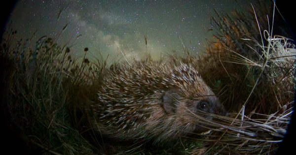 Найти ночью ежа на бескрайних степных просторах не многим проще, чем черную кошку в темной комнате. Особенно, если учесть тяжесть фотооборудования в кофре за спиной. Но нет ничего невозможного. Через несколько часов поисков и безрезультатного хождения по ночной степи легкое сопение выдало местоположение ежика. Ночью это животное активно, поэтому съемка превратилась в безостановочное ползание на животе по степи. Животное дикое, его я никак не удерживал и не мешал свободному перемещению.