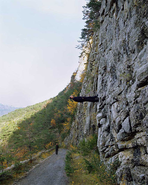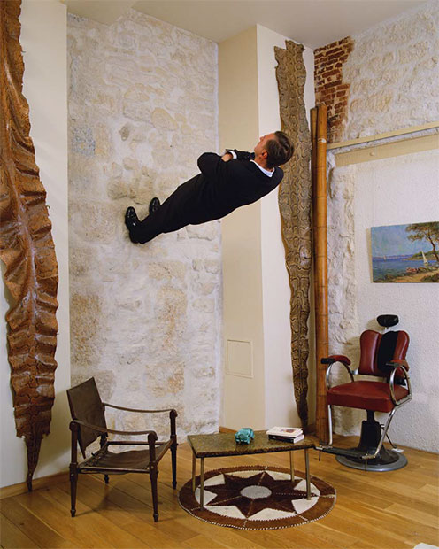 Фотограф из Франции родился в 1961 году, получил образование скульптора. Именно его способность создавать необычные приспособления из дерева и металла бросила вызов гравитации на фотоснимках. Для каждой конкретной съемки он изобретает специальное устройство, которое помогает обмануть глаза зрителей. Хитрые конструкции прячутся под одеждой фотографа.