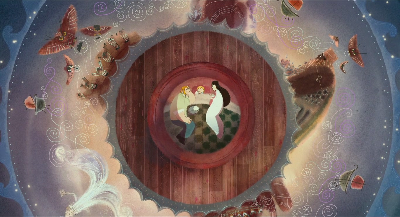 - В мультфильме невероятное количество символики. Постарайтесь рассмотреть все узоры! Например, в сцене с волшебником, который хранит все истории в своей бороде появляет тройная спираль. Одна из её трактовок такая: у древних кельтов её значение было в вечности, постоянном духовном росте, гармонии между телом, духом и разумом.
