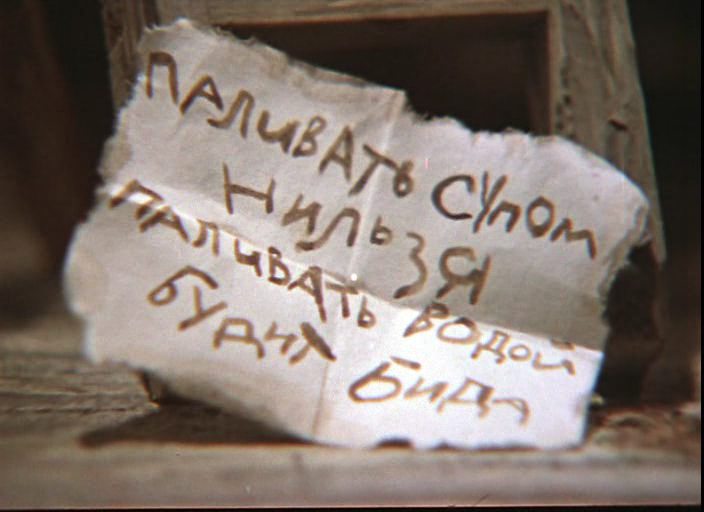 Если вы дочитали до этого момента, то ловите интересный факт. В одной из серий, дядюшка Ау совершает огромную ошибку. И вместо того, чтобы поливать цветок водой, поливает его рыбным супом. Так вот! Совершает он эту ошибку из-за надписи на бумажке, которая должна была помочь. На ней было написано вот это: