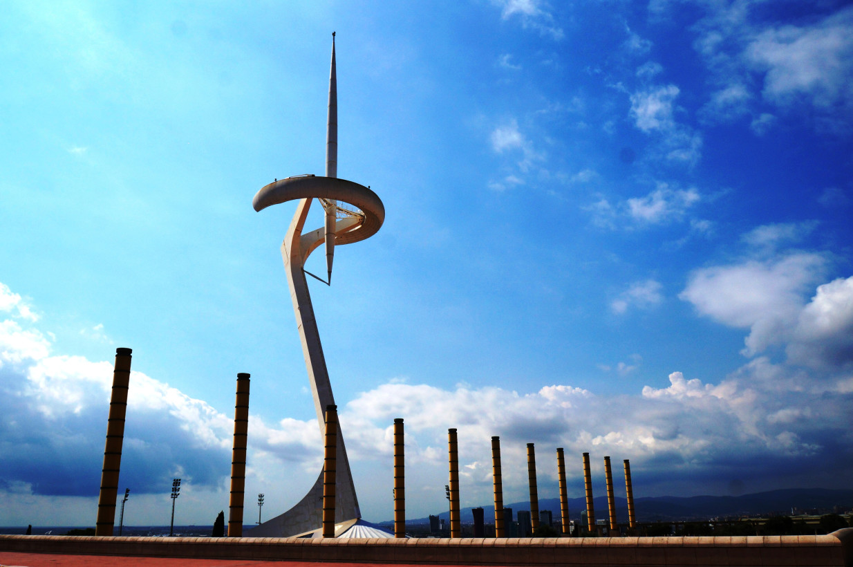 Вышка высотой 136 метров находится на горе Монтжуик. Но это не просто обычная техническая «скучная» вышка, каких тысячи. Сантьяго придумал два необычных решения: во-первых, визуально башня похожа на атлета с факелом, во-вторых, хитрым образом спроектированный шпиль служит реальной стрелкой циферблата на основании башни, по которому можно определить время. Там есть еще раздвижная дверь похожая на глаз. Это сооружение стало символом Олимпийских игр 1992-го года и Барселоны.