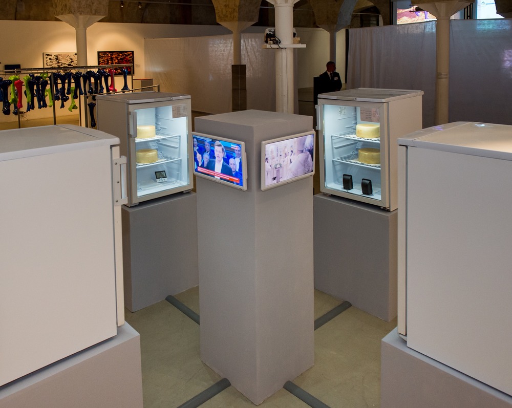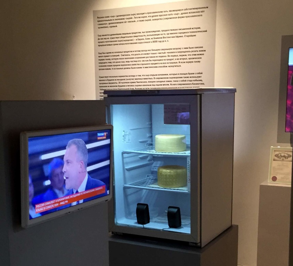 На дипломной выставке Британской высшей школы дизайна «Сосуществование. Обозначение границ», которая проходит за счёт фонда поддержки современного искусства Винзавод.Open, художник Елена Благославова, участник российских и международных выставок и биеннале современного искусства, впервые за историю искусства представила сыр как арт-объект.