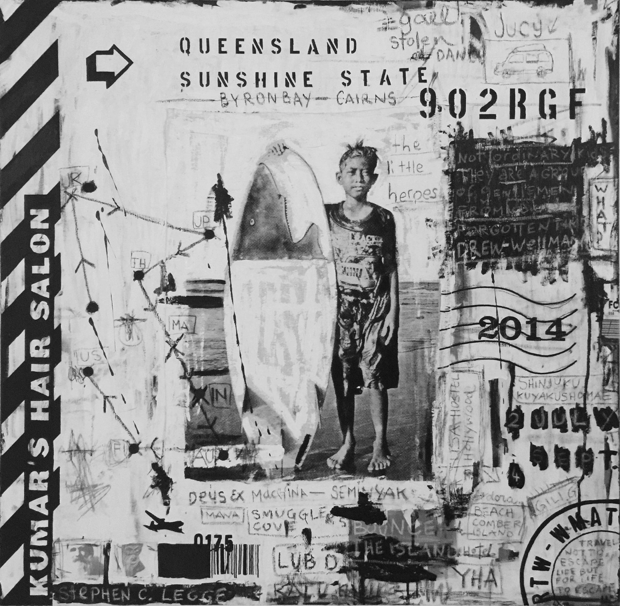 К примеру, в процессе написания одной из моих любимых работ, которую я закончил три года назад во время путешествия, я решил использовал ткань, которую купил на Бали в Индонезии до этого. Поэтому я использую именно те материалы и техники, которые приходят мне на ум уже в процессе создания картины. И они могут меняться из раза в раз. Я вообще люблю экспериментировать.