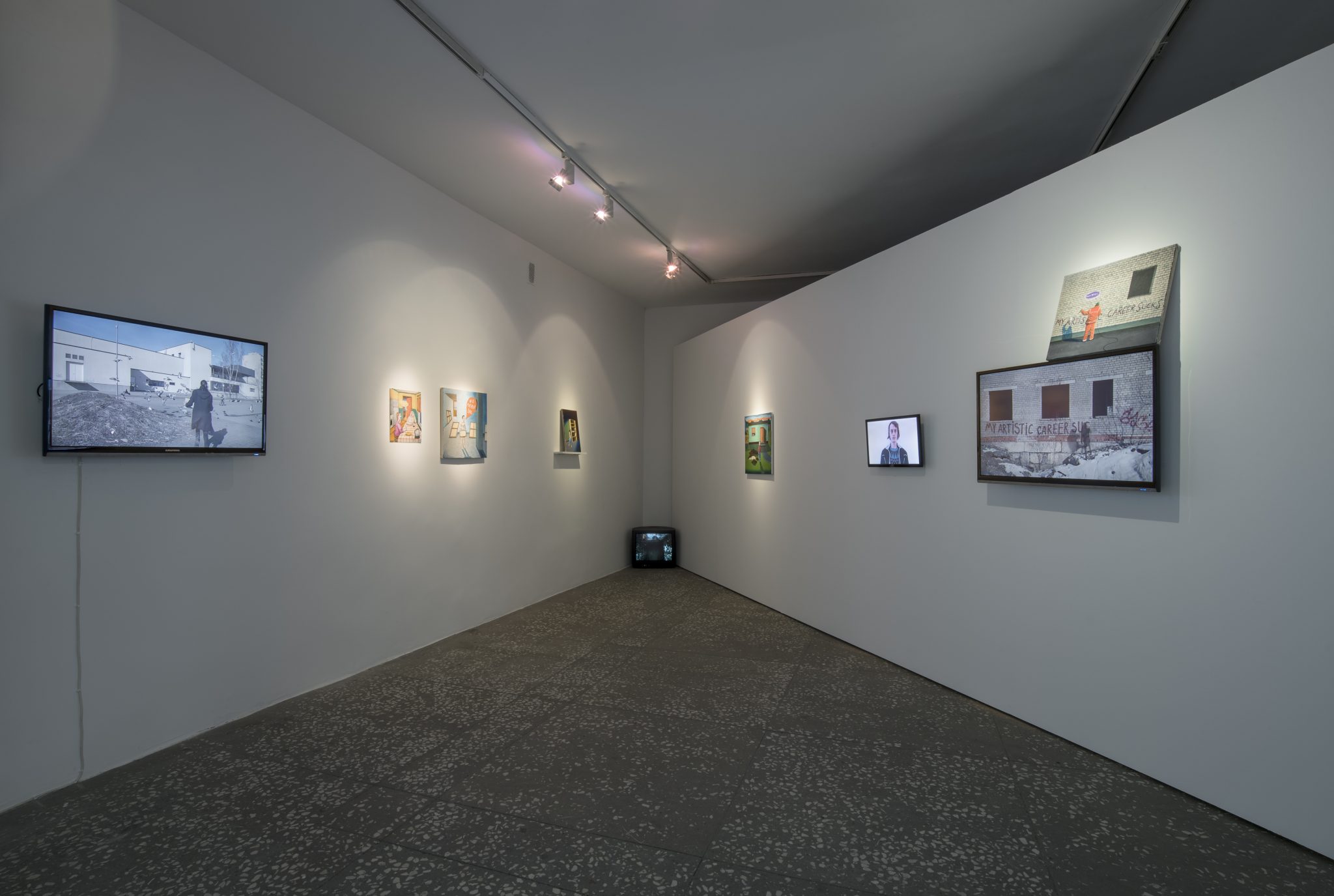 Недавно была выставка Art is not just fun any more в Тарту. Идея в том, что если я продаю картину и на этой картине есть фраза, которая мне нравится и которая имеет смысл вне зависимости от картины, то я набиваю эти фразы на своем теле. Сейчас у меня была уже пятая татуировка. Каждый раз я делаю короткометражку о невозвратности своего личного выбора. В какой-то момент художник сливается со своими произведениями.