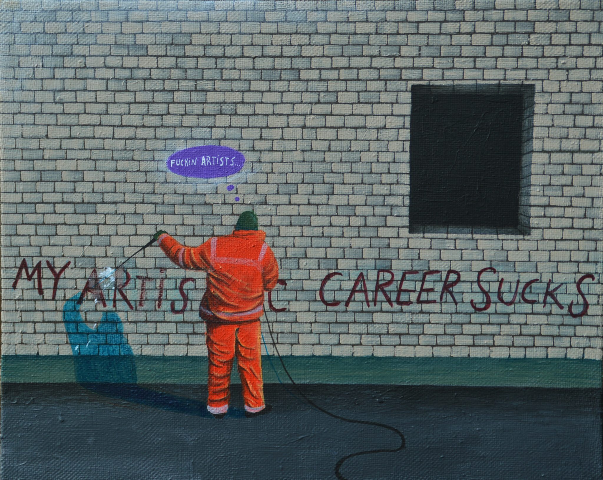 Современное искусство нет смысла делить на жанры. Я использую в своих роботах и видео, и живопись, и рисунок, и пространственные инсталляции. Если говорить про мои картины, то у них есть совершенно разные источники. Начинал я с советской карикатуры, эстонской мультипликации. Из них возникли первые серии картин.