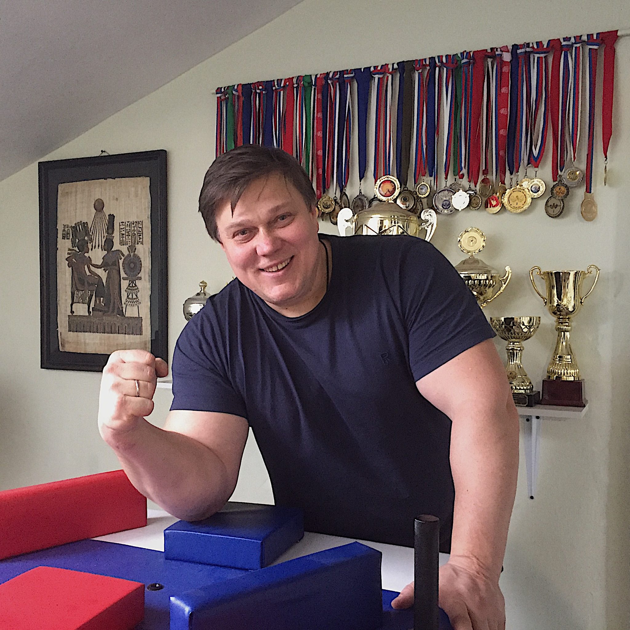 Спорт я люблю, и все же сильнее искусства он меня никогда не увлекал. Эти две линии всегда шли параллельно. В детстве я был непоседой, сложно было усадить писать натюрморт. Я пробовал себя во многих видах спорта, но больше всего меня привлекал армреслинг. Эта любовь тянется годами. Когда я поступил в академию художеств, появилась возможность им заниматься. Всегда любил бороться с ребятами на руках, неплохо получалось, как мне казалось. Но когда худенькие ребята оказывались сильнее и я проигрывал, то никак не мог понять: у меня же руки объемные, почему же я не побеждаю? Когда пришло осознание, что при всей внешней силе мышцы рук все-таки слабые, не стал отчаиваться. Этот момент лишь стал мотивацией для регулярного посещения спортивного зала. Начал качать руки, постигать «азбуку армреслинга».