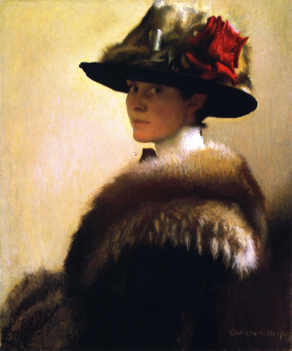 Самая узнаваемая картина Роджерс – Woman in a Fur Hat. Считается, что это автопортрет. Изящный силуэт дамы в шляпе Гретхен наделила собственными чертами. Хоть эта работа и относится к портретной живописи, в ней можно увидеть гораздо большее.