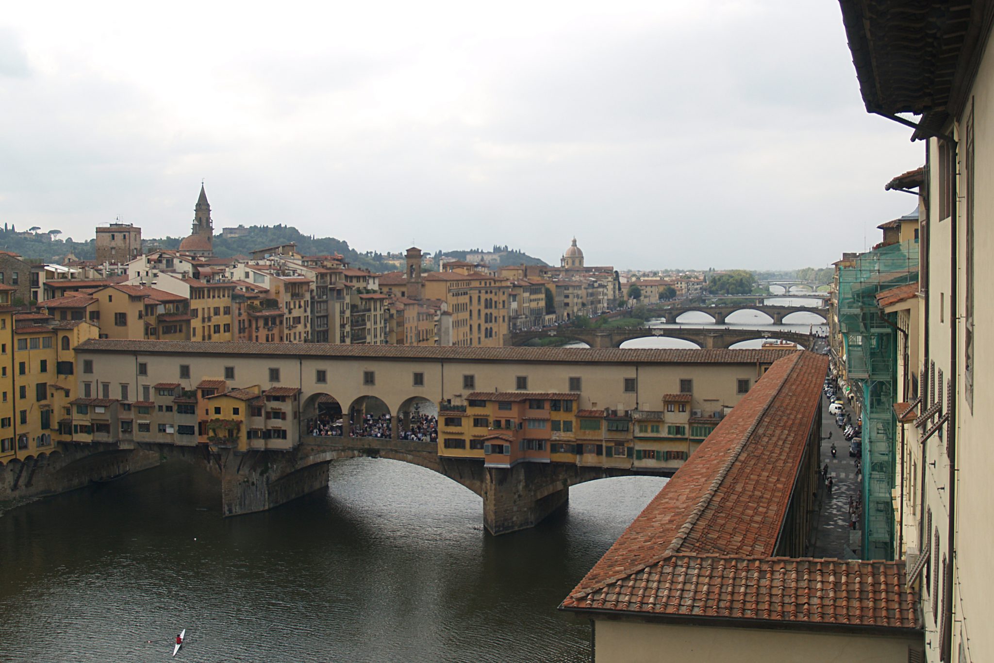 В середине этого сооружения, протянувшегося над мостом Понте Веккьо, расположены панорамные окна, обращенные к реке Арно, в направлении Понте-Санта-Тринита. По приказу Бенито Муссолини в 1939 году они были заменены на большие в связи с официальным визитом Адольфа Гитлера. Дуче хотел, чтобы тот мог насладиться открывающимся из коридора видом Флоренции.