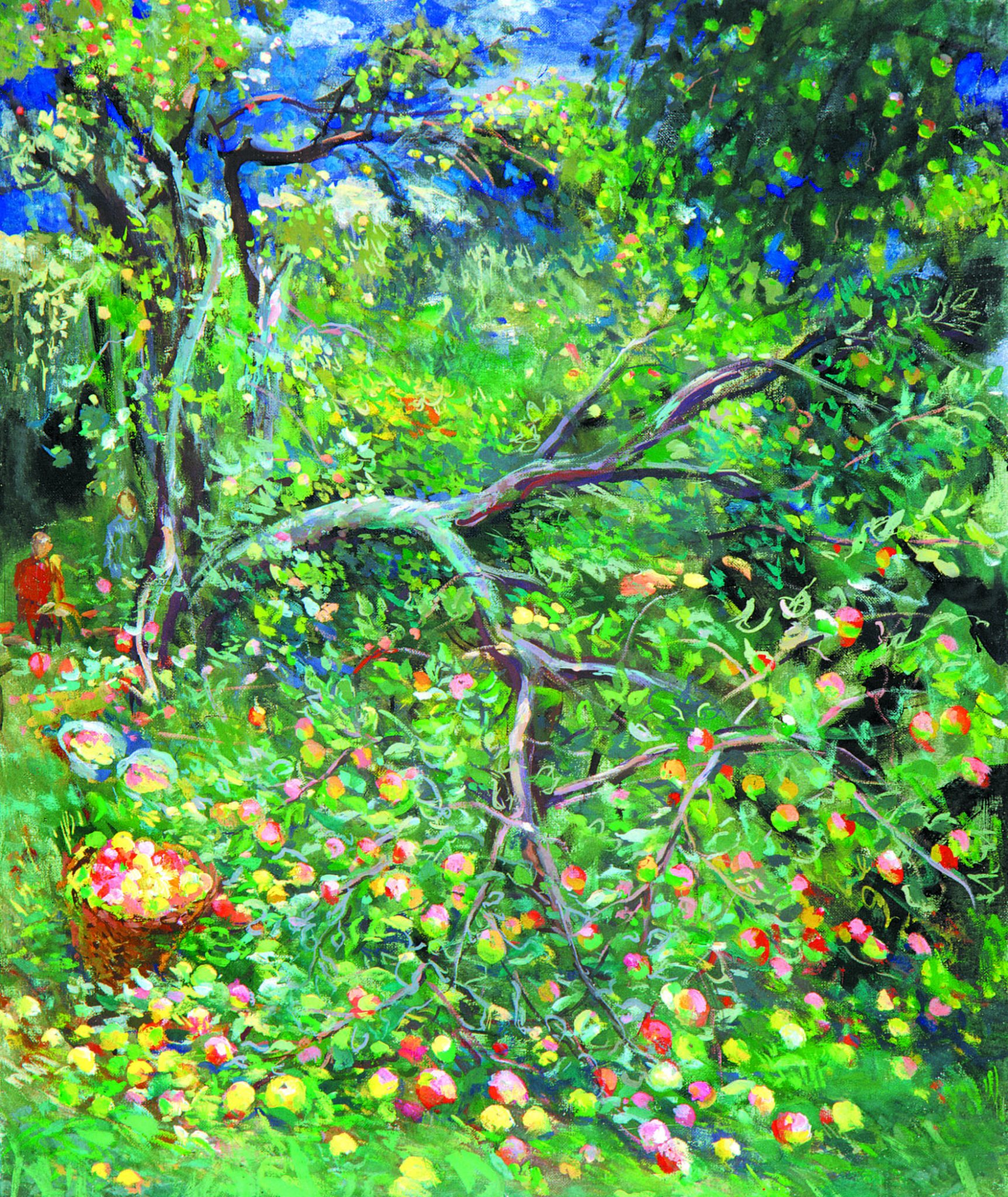 Такое человеческое решение, безусловно, печально, однако на холсте отсутствует какая-либо трагедия. Практически вся картина выполнена в теплой гамме, свет на ней очень мягкий, без резких теней. Яблоки переливаются на солнце, выглядят спелыми и сочными.