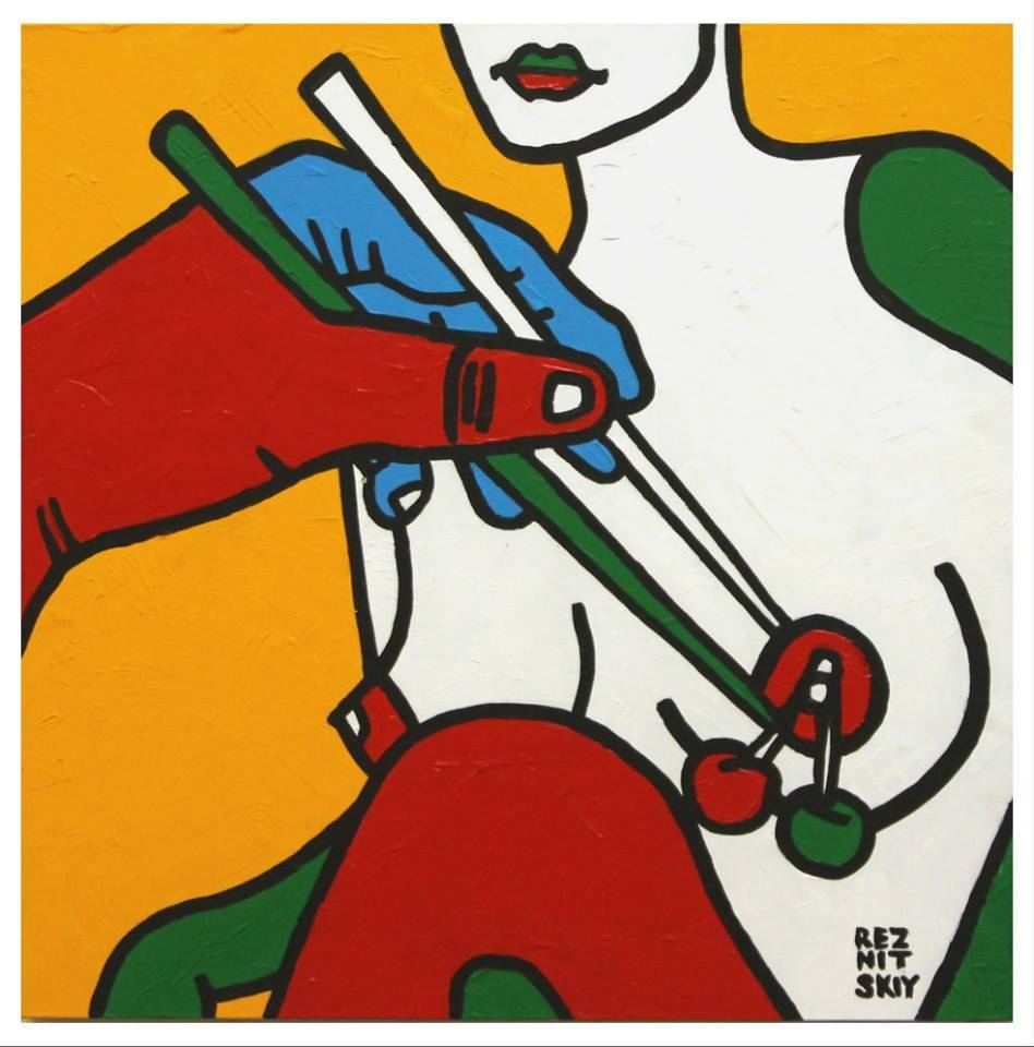 Я всегда понимал, что рано или поздно меня начнут копировать. Потому что мое творчество базируется на идее, а скопировать меня легко, я же не Шишкин. Около года назад мне прислали сообщение в Инстаграм с текстом: «Резницкий, не твоя ли это картина?». Я перешел по ссылке в аккаунт девушки из Питера, где на одном из фото она была запечатлена ставящей свою подпись на только что сделанную копию моей картины. Я вот не понимаю: это надо быть либо тупой, либо наглой. Я сам всегда делал копии, художник должен делать копии чужих работ в целях развития. В свое время я сделал десяток копий рыбок Матисса. Но делая копию Матисса, я никогда не ставил подпись «Reznitsky». Это неправильно. Делайте копии, пожалуйста, но не ставьте свои подписи!