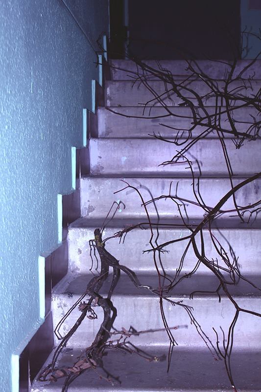 Artifex: Да, но в своих работах ты переносишь природу в урбанистическое пространство. Раскладываешь веточки на лестничной клетке или укладываешь их эстетично в ванне. Делаешь скульптуры с цветами внутри. Все эти вещи, так или иначе, синтезируются с городом.