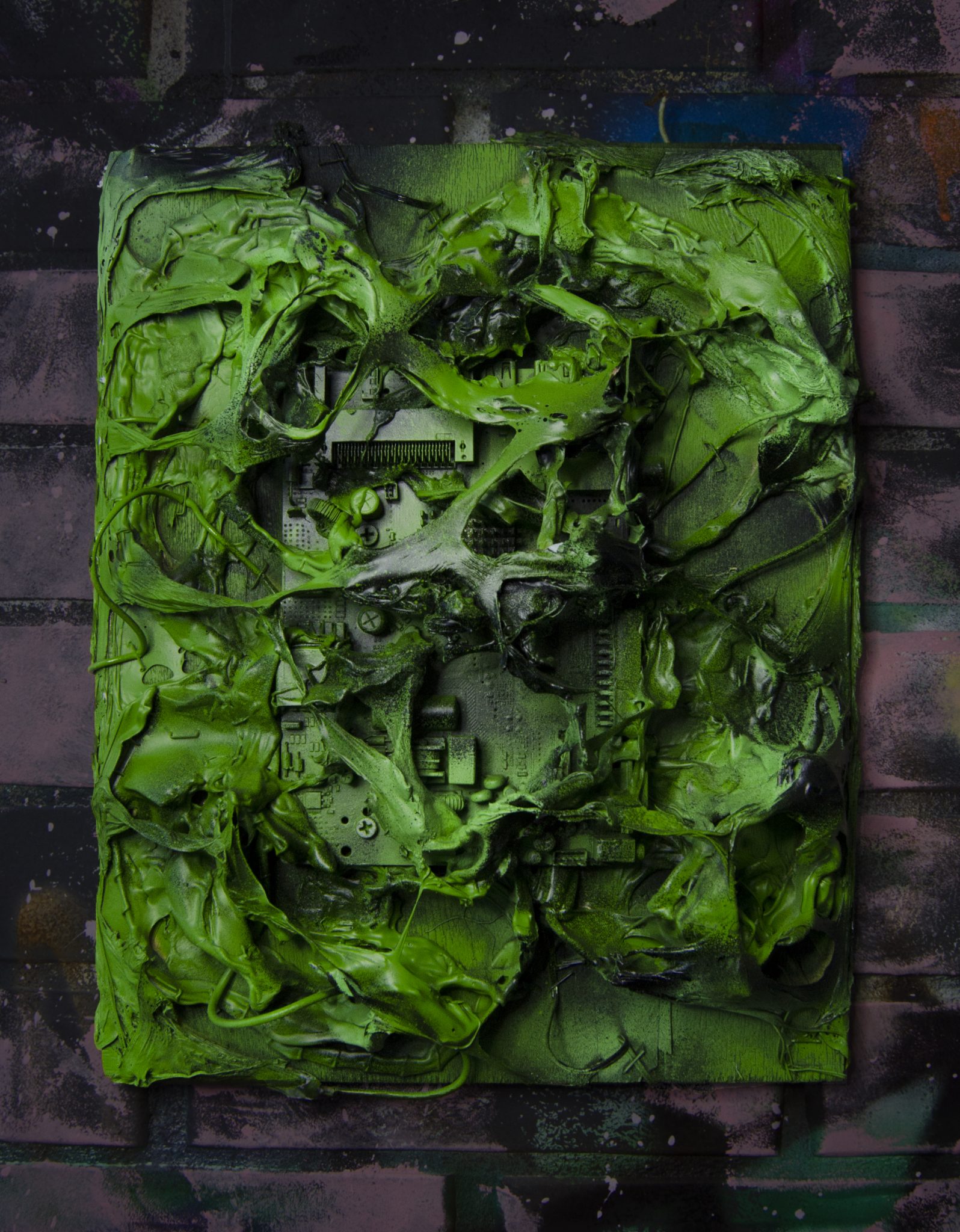 Определенных методов как таковых, наверное, и нет. Есть, скорее, решения, подходящие под концепцию поставленной задачи. Материалы я нахожу дома, на улице, на различных локациях, в местах, которые существовали ранее, но были либо заброшены, либо разрушены. Как, например, с серией картин-инсталляций «Save the Rave», упомянутой мною до этого. Или картина-инсталляция «Север. Русь», прошедшая конкурсный отбор для выставки в Omelchenko gallery. Материалы для нее я собирал в известном в свое время ресторане «Русь». По завершении выставки картина отправилась в центр современного искусства «Сияние», владельцем которой является телеведущий Андрей Малахов.
