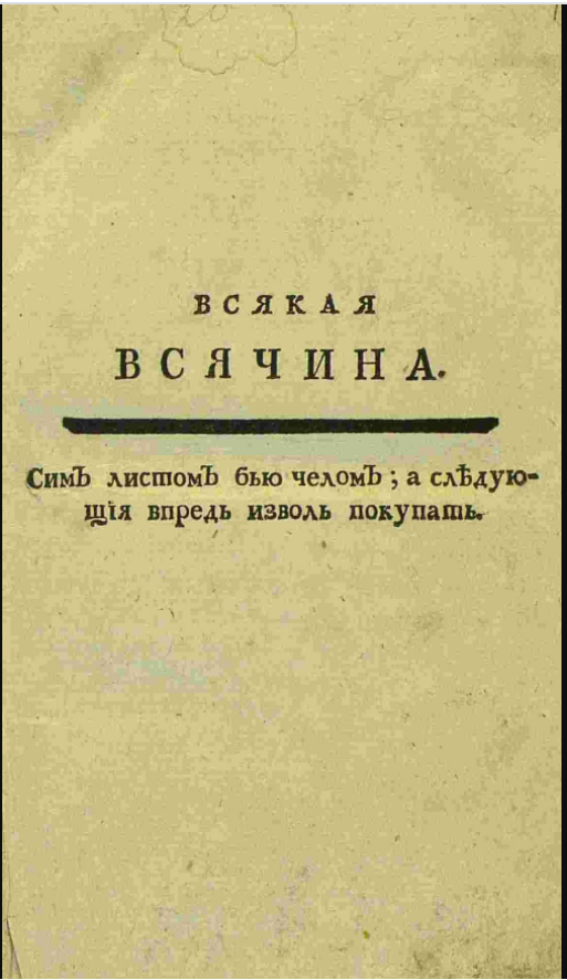 Екатерина Великая была не только мощным реформатором и умнейшей женщиной, но и довольно опасным публицистом. В 1769 году вышел первый номер журнала «Всякая всячина», издателем которого был назначен её статс-секретарь Григорий Козицкий. И имя это запоминать совершенно необязательно, поскольку оно – для отвода глаз: должность Козицкий занимал только формально, а вела журнал сама императрица, ведь это отличный политический инструмент.