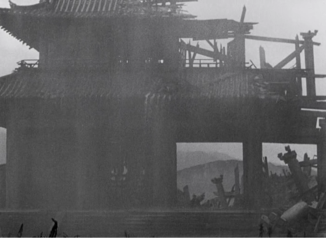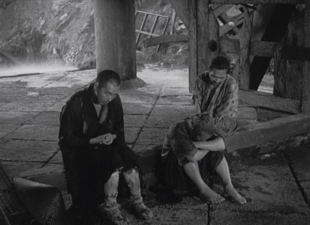 Потоп прекращается, когда дровосек спасает младенца. Камера устремляется на его светлое улыбающееся лицо. Бог простил людей, ведь осталась же в их сердцах великая доброта. У нищего дровосека и так шесть детей, а он ещё и седьмого взял. Но только я всерьёз не воспринимаю такой сюжетный ход. Мне кажется, что Куросава был вынужден его сделать, чтобы дать хоть какую-то надежду зрителю.