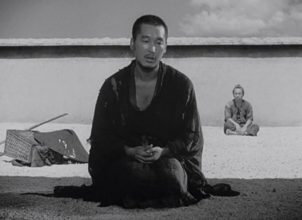 Страшный ливень хлещет по крыше полуразрушенных ворот у южной границы Киото. Землетрясение, цунами, чума и бандиты одолели древнюю столицу. Кажется, пришел апокалипсис. Под воротами от дождя спасаются два человека: монах и дровосек. Но есть кое-что похуже ливня. Это тяжелые думы и противоречия, одолевающие двух несчастных. Они только что были свидетелями на судебном процессе. Дело в том, что убили самурая, жену его изнасиловали. Преступника поймали. Кажется, всё понятно, но почему же тогда лица монаха и дровосека так искажены негодованием?