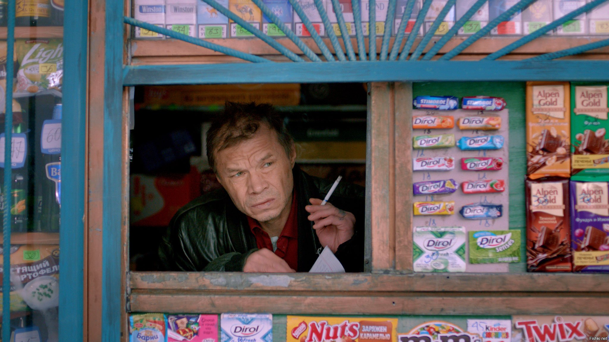 Там её ожидает рыцарь самого печального образа – продавец Сергей, который спит и видит себя аристократом, но вынужден, в силу сложившихся жизненных обстоятельств, работать в ларьке. Сергей ведёт тетрадь, куда записывает свои философские измышления о явлениях жизни. Ожидая свою сменщицу, Монтень-из-ларька попадает в плен к своему армейскому сослуживцу Дюку (несравненный и великолепный Александр Баширов), который, недавно вернувшись из мест не столь отдалённых, приходит его навестить. Забегая вперёд, скажу что Дюк на самом деле окажется злой волшебницей Бастиндой.