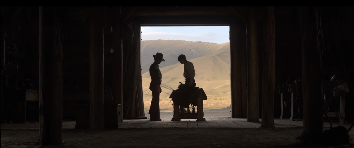 Чередование бытовой немоты и монотонной музыки Джонни Гринвуда, планомерно переходящей от тревожного гитарного перебора до заунывного, без пяти минут триллерного рыдания скрипок — фундамент саунд-дизайна «Власти пса». Напоминает то, как Гринвуд озвучивал визуальный ряд «Нефти» Пола Томаса Андерсона. И тут и там музыка призвана накалять обстановку, лавировать между лёгким испугом и эротическим напряжением. Не думали же вы, что в стране горбунов (читайте: маскулинных невеж) стройность (читайте: эмпатия) не будет восприниматься как уродство? Особенно если речь идёт о чувственности, табуированной в сельской Америке 20-х: когда один ковбой шаловливо подмигивает другому ковбою, но на людях оба делают вид, что ничего такого не замечали.