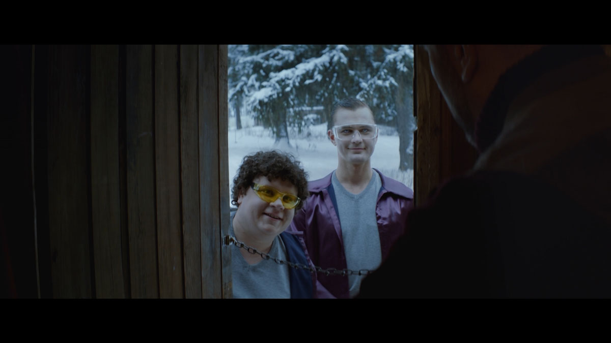 Обшарпанная сторожка в зимнем лесу. В ней брутального вида мужик слушает кассетный магнитофон и готовит еду на плитке. Стук дверь, за дверью два улыбчивых молодых человека в фиолетовых прахах и жёлтых очках. «Хотите познакомится с продукцией фирмы «Орифлеймн»? Небритый мужик не хочет, он достаёт двустволку из без разговора стреляет одному в голову. Оказывается, это роботы. Другой робот в ужасе убегает, мужик его догоняет, тот падает на снег. «Я не робот, я не робот!» – вопит он. Мужик достаёт прозрачный планшет и требует отметить картинки, где есть дорожные знаки. Робот вздыхает. Выстрел.