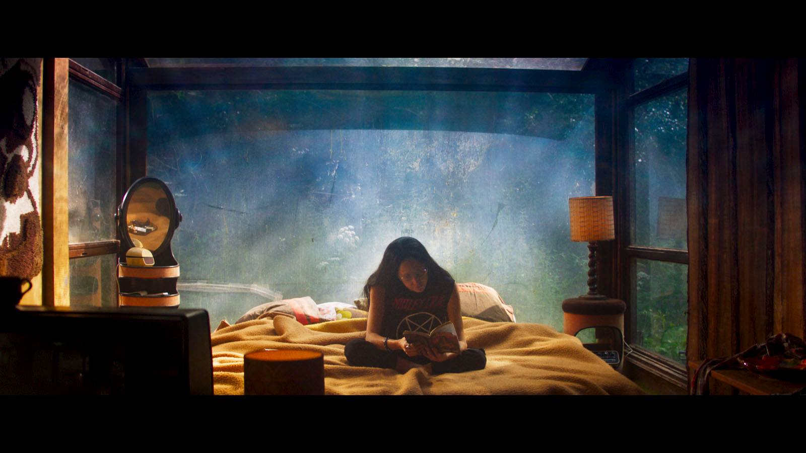 Начинается фильм вполне реалистично. Нам показывают, как брутальный Николас Кейдж валит лес. В «Мэнди» Кейджа зовут Ред, и он дровосек, что вполне соответствует его образу, ранее созданному в кино. Живёт Кейдж-Ред тоже в лесу. Почему бы и нет? Может же жить дровосек в лесу? Может. Чистый воздух, сосны — пока всё в рамках реализма, верю, всё правдоподобно.