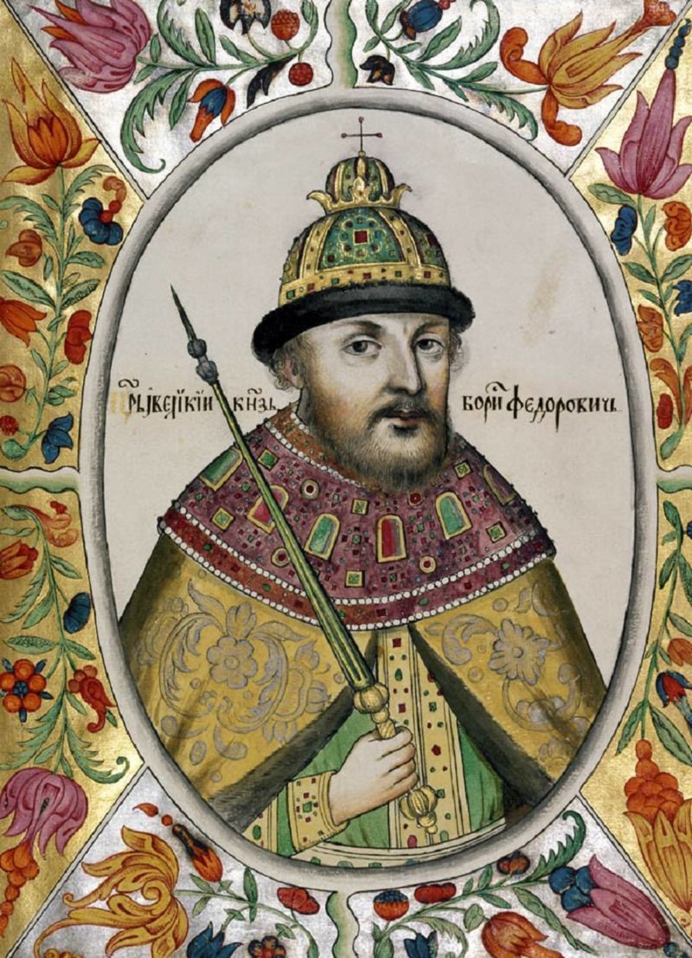 Второй символический слой сериала связан с атрибутами царской власти – скипетром и державой. В эпизоде с венчанием на царство Федора Ивановича важную роль играет один элемент: новоизбранный монарх не смог удержать «царское яблоко», поскольку был слишком слаб здоровьем. Федор передал державу Годунову со словами: «Борис, тяжело. Подержи». Этот момент действительно символичен, поскольку в будущем власть перейдет именно к Борису. Скорее всего, эта сцена основывалась на эпизоде из «Повести о честном житии царя Федора Ивановича». Она была написана уже после смерти Федора в период царствования Бориса Годунова (1598–1605 гг.). В источнике есть фрагмент, когда царь Федор возлагает на своего приближенного знаки царской власти, словно назначая его своим преемником.