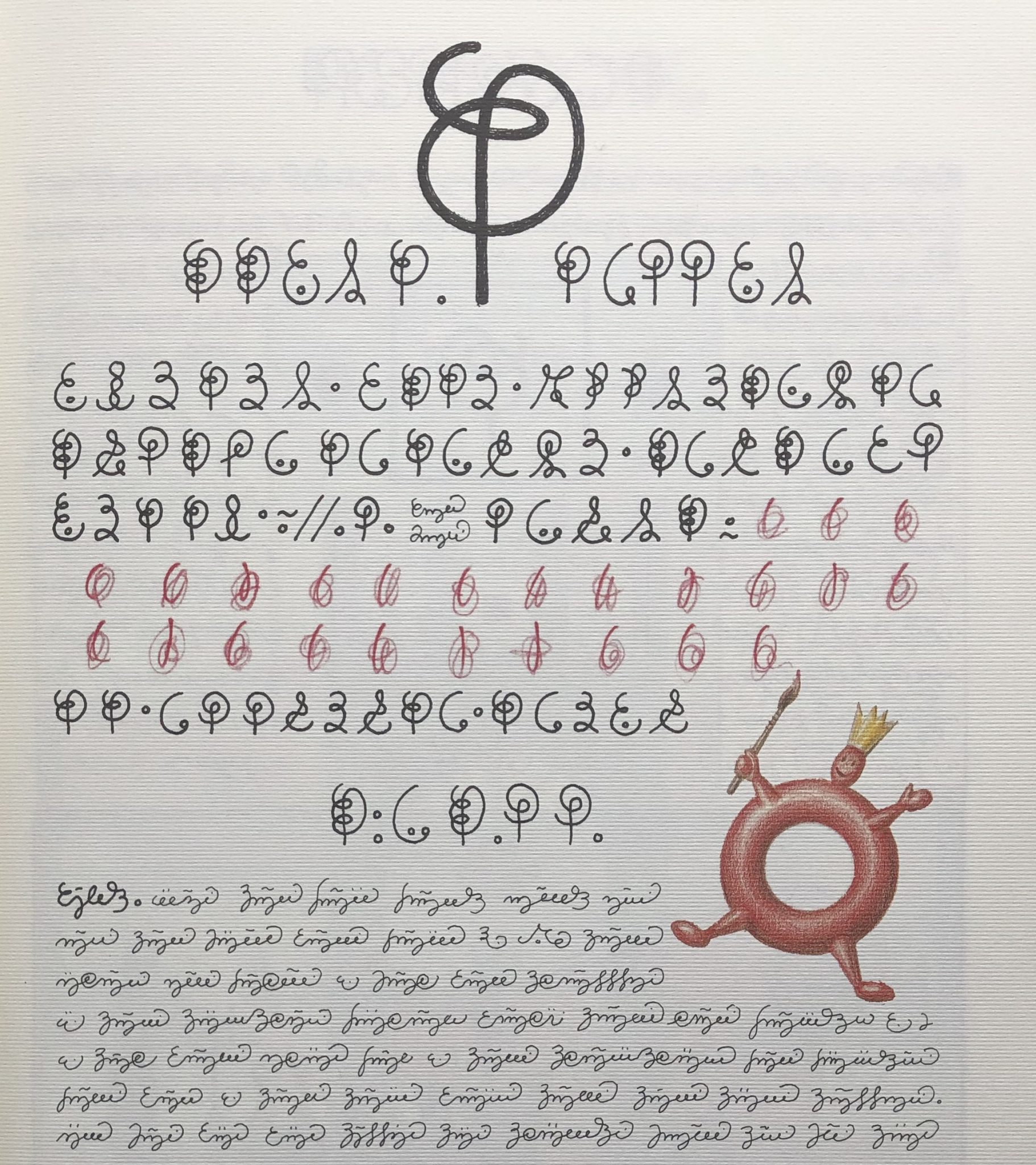 Зато легко предположить, что кошачья письменность тоже должна обладать как текучестью, так и прыгучестью, потягучестью и ползучестью, что в полной мере демонстрирует алфавит, представленный в Кодексе Серафини.