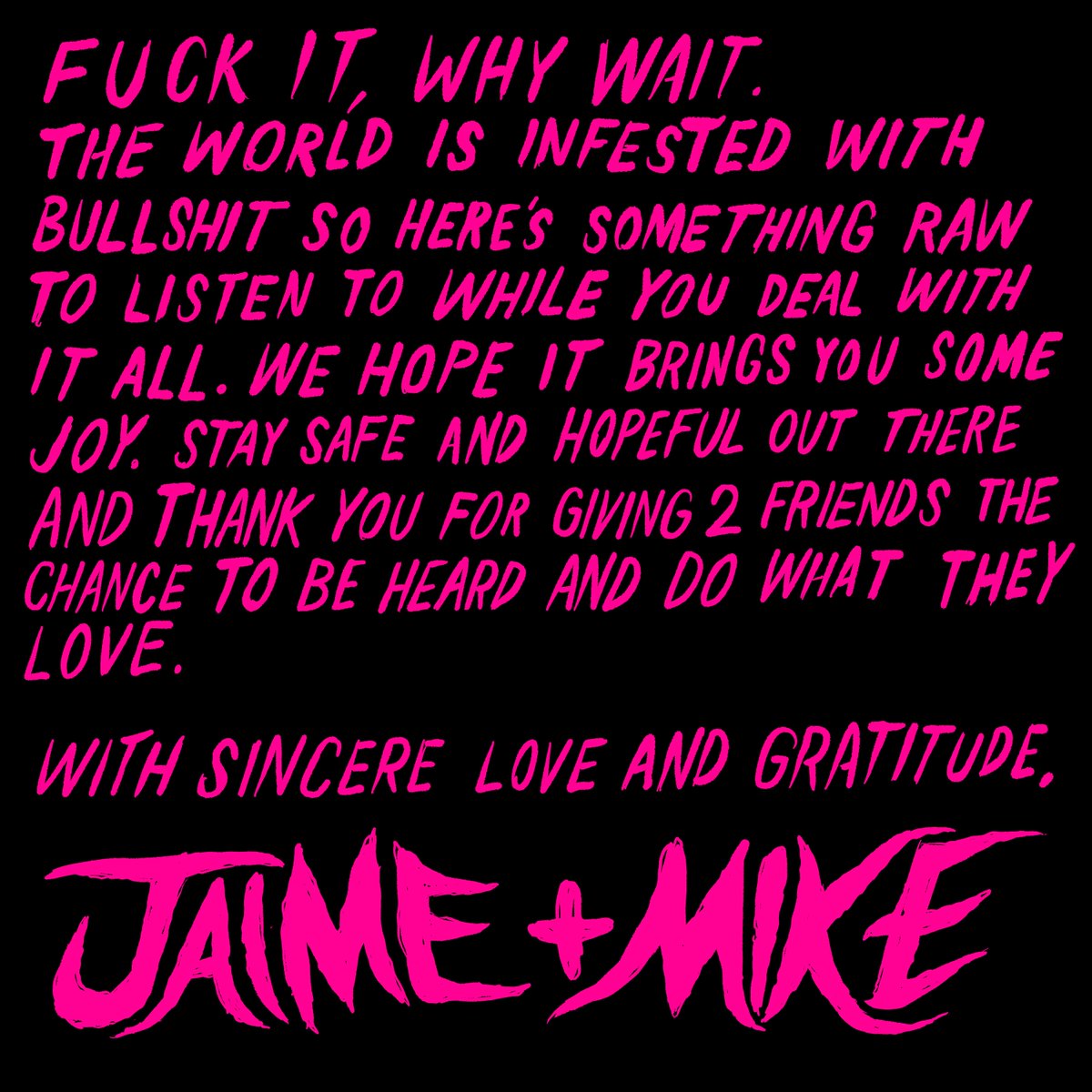 «К чёрту всё, зачем ждать. Мир сейчас просто погряз в дерьме, так что ловите кое-что свежее, пока разбираетесь со всем этим»
