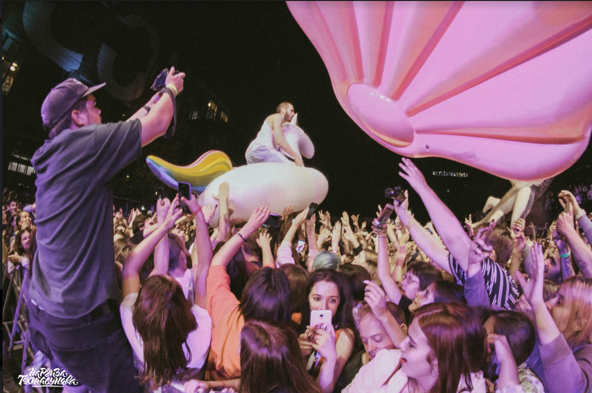 Звучали такие треки как: «Иуда», «Панелька», «Черным-черно», «Аллилуйя» и многие другие. Толпу разносил каждый трек. Я знала только самые популярные, но это не мешало отрываться вместе с артистом и фанатами.