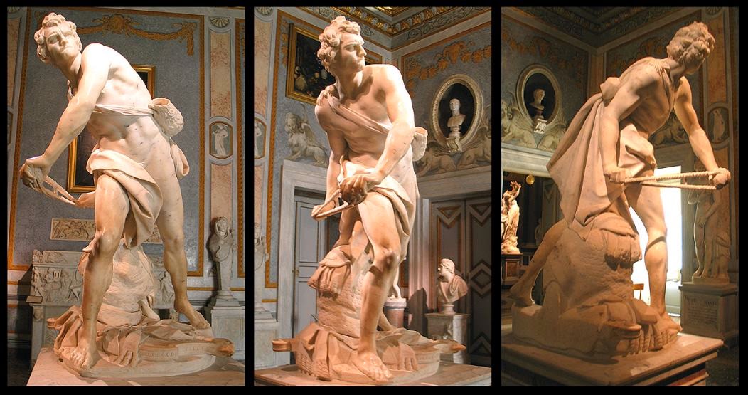 Наш скульптор всегда мечтал о том, чтобы уметь запечатлевать мгновение, передавать его вечность; ведь именно на этих моментах, почти неуловимых для глаза, моментах величайшего эмоционального напряжения, и строится наша жизнь; именно в них, в этих ускользающих сквозь пальцы песчинках времени, и кроется секрет красоты. И вот перед нами его «Давид», и как топорно в сравнении с ним выглядят одноименные произведения великих скульпторов прошлого: Донателло и Микеланджело! Насколько топорной кажется их работа, как мало эмоций!