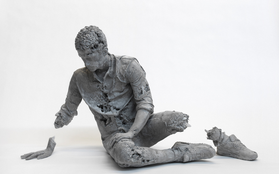 Заходишь в помещение – а перед тобой потолок свисает и ноги из него торчат. Нет, это не коматозный бред, в Москве проходит выставка Дэниеля Аршама (Daniel Arsham). Этот американский художник работает в разных видах изобразительного искусства – скульптура, архитектура, дизайн, сценография, видео-арт, фотография. Он даже выступал в роли модельера, разработав, например, дизайн белых кроссовок для Addidas.